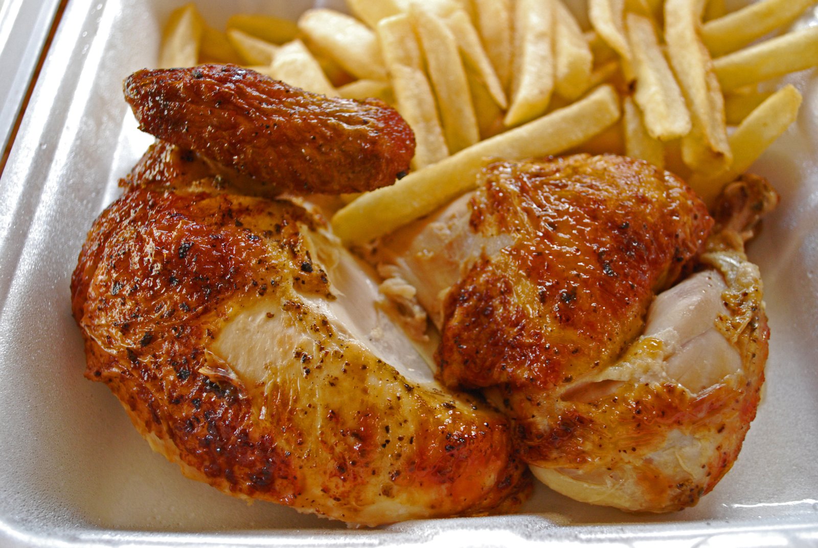 Now truth be told, this place doesn't hold a candle to the woodburning Pollo a la Brasa joints in LA, or even the Peruvian mega-chain Pardo's. And while the flavor is not quite up to the level of El Pollo Inka, it is still quite good. The meat is very moist, soft, but not mushy. The flavor is on the salty side, but in a good way. The Aji Amarilla is bland. The fries….well, who doesn't love french fries??? The salad is your basic iceberg lettuce mix.