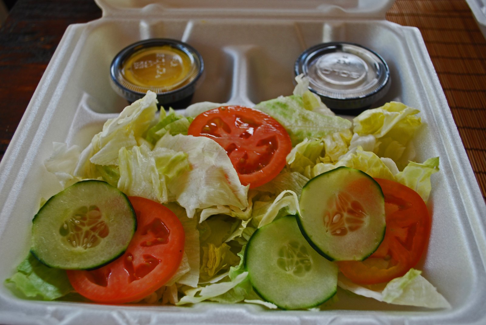 And of course, I needed to get some Pollo a la Brasa. I ordered a Half Chicken ($11.95), which came with a green salad, papas fritas (of course), and some Aji Amarilla (yellow pepper sauce).