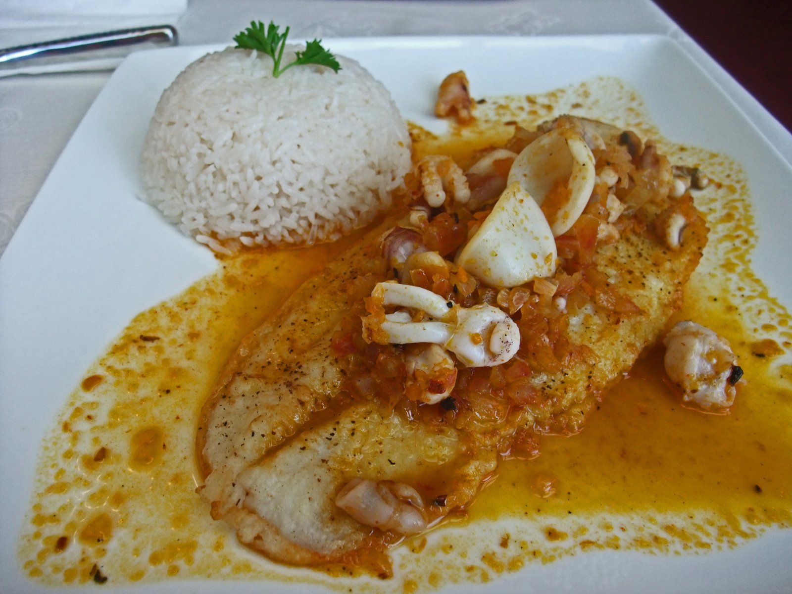 The Missus ordered one of Her favorite dishes, Pescado a lo Macho ($10):