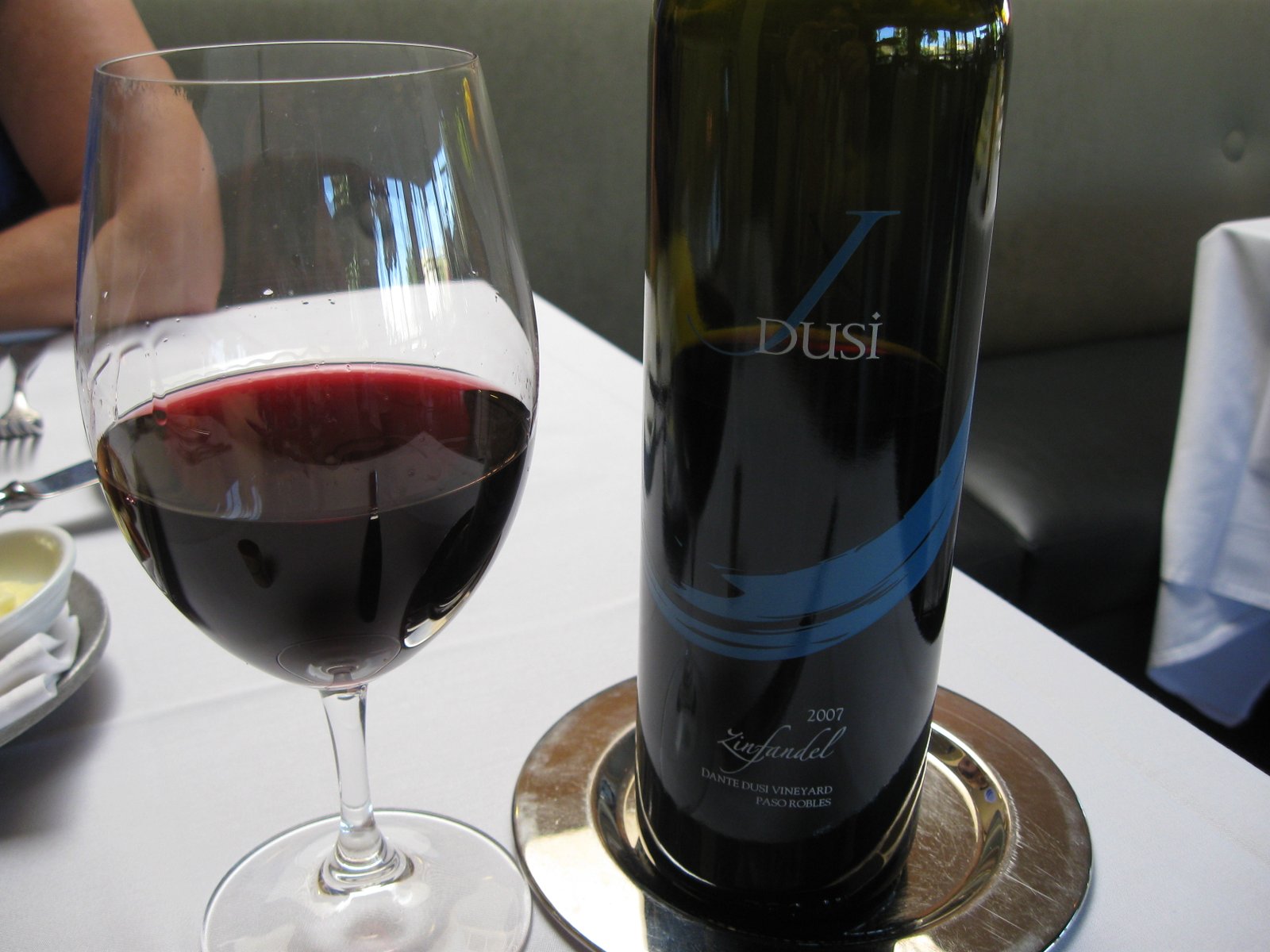 On this evening, we had decided to build a meal around a local red wine, a J Dusi Zinfandel ($40): The Dusi Vineyards have been growing some of the best Zinfandel grapes in the Paso Robles area for many years. These family Vineyards have supplied premium grapes for such outstanding wineries as Ridge. Today, Janell Dusi produces her own wines from the vineyards planted by her grandfather, Dante Dusi, over 60 years ago.