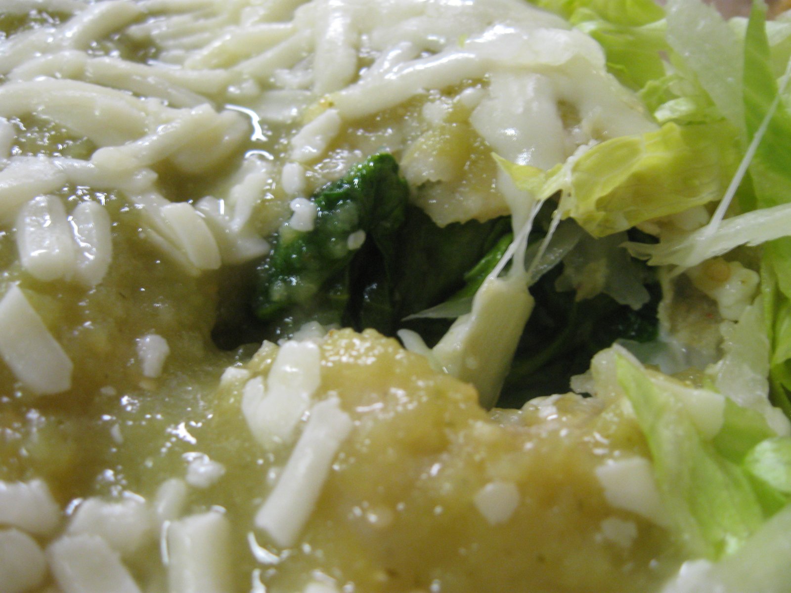 Yet I am constantly puzzled by one fact. I have never seen the spinach enchiladas (or the chicken and spinach burritos for that matter) on the menu or even written on the specials white board. Never. Yet most of the time spinach dishes are available.
