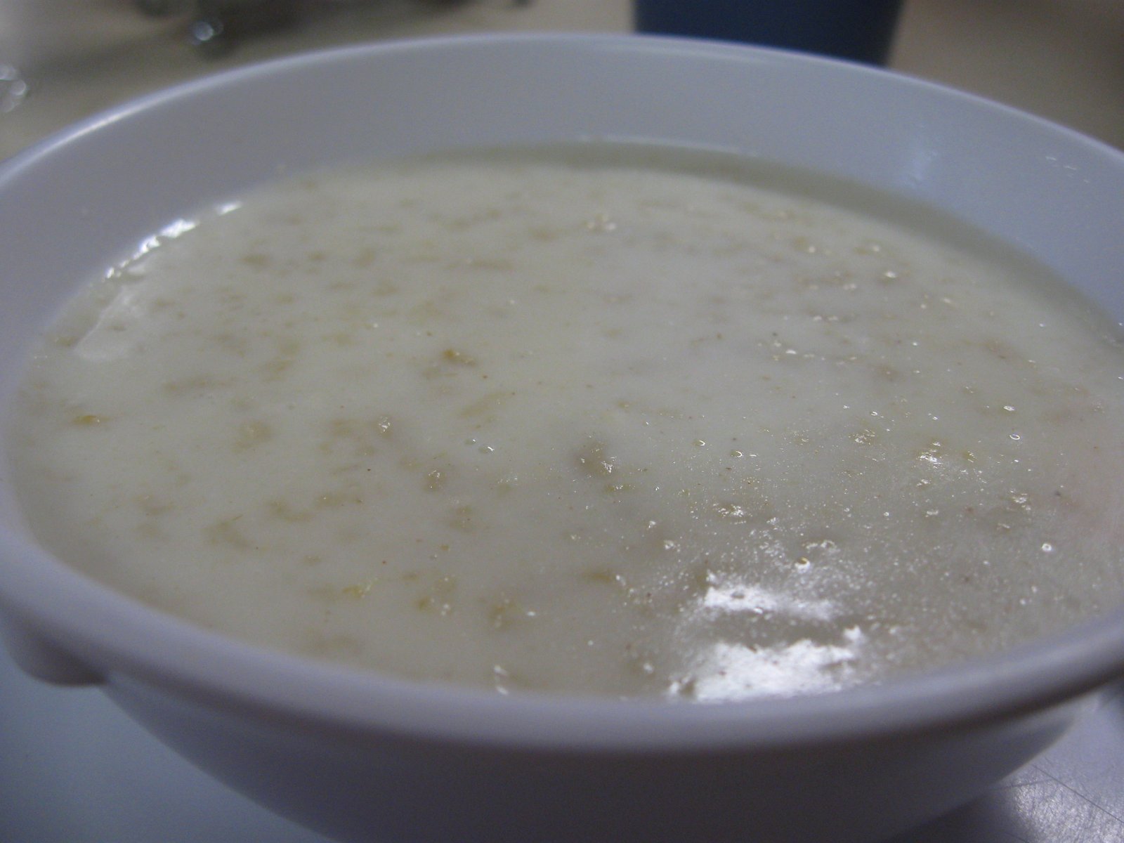 For example, on a recent visit, Danny brought Tina and I little bowls of his oatmeal for dessert: The texture featured bits of chewy oatmeal suspended in a wonderfully creamy liquid. It was slightly sweet and had a pronounced cinnamon flavor. While certainly not the healthiest oatmeal I have ever eaten (I could taste the cream), it was surprisingly rich and flavorful. As served, kindof a desert soup.