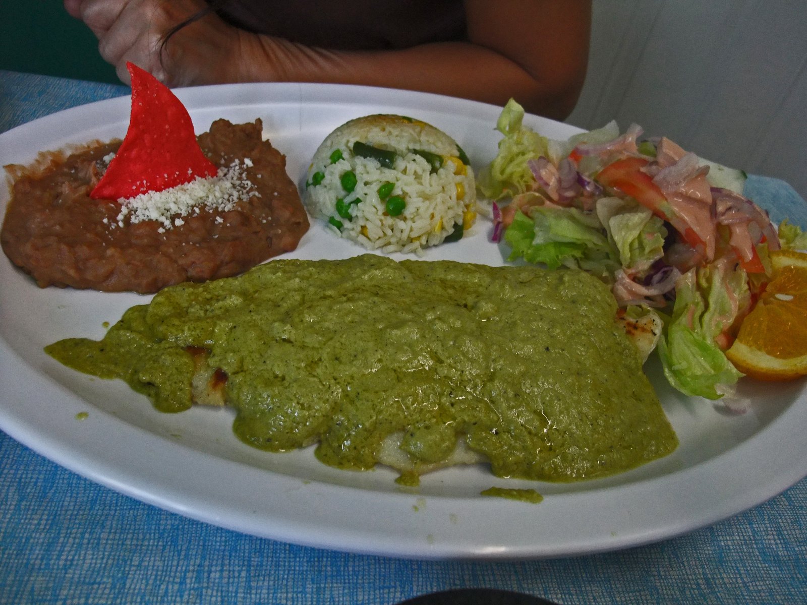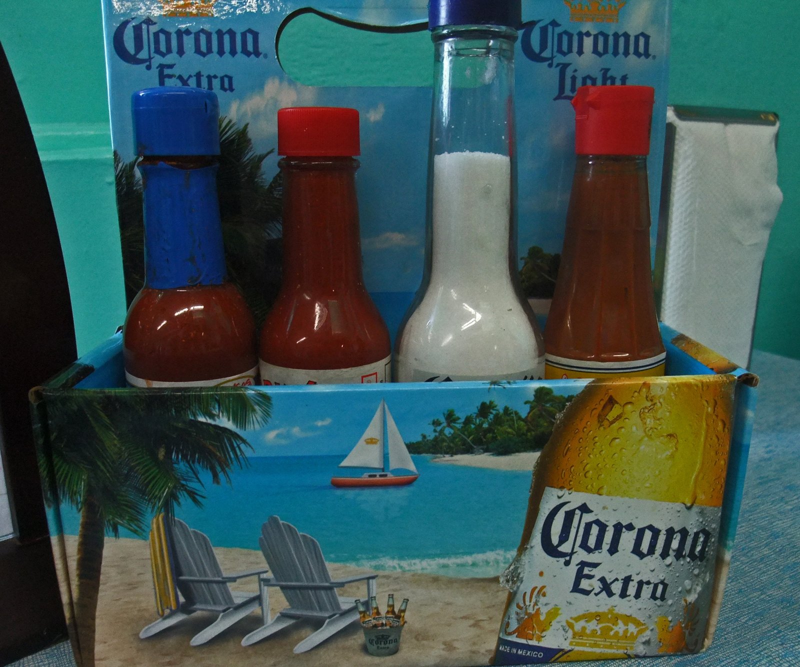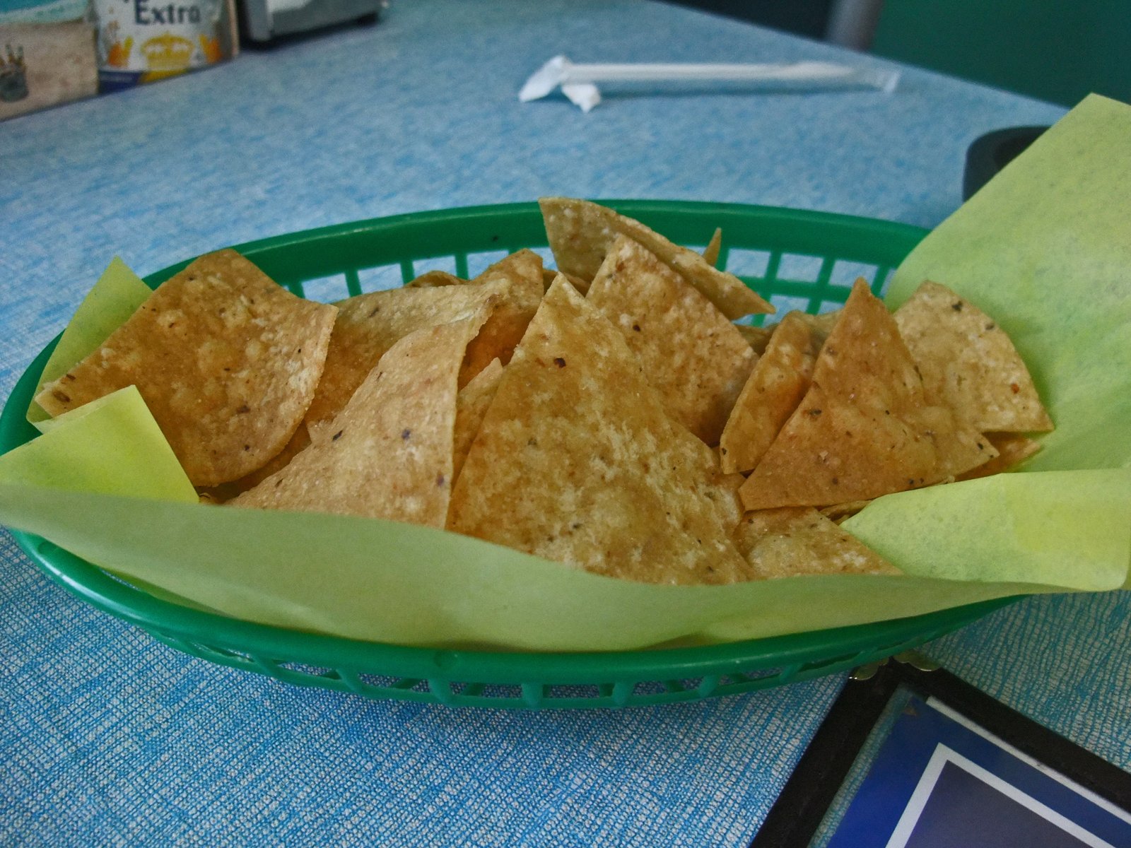 The interior is packed with tables and chairs, and is very…..green, to reflect the ocean theme I guess. The young man who greeted us at the door with a big smile, wasted no time in getting us some chips.