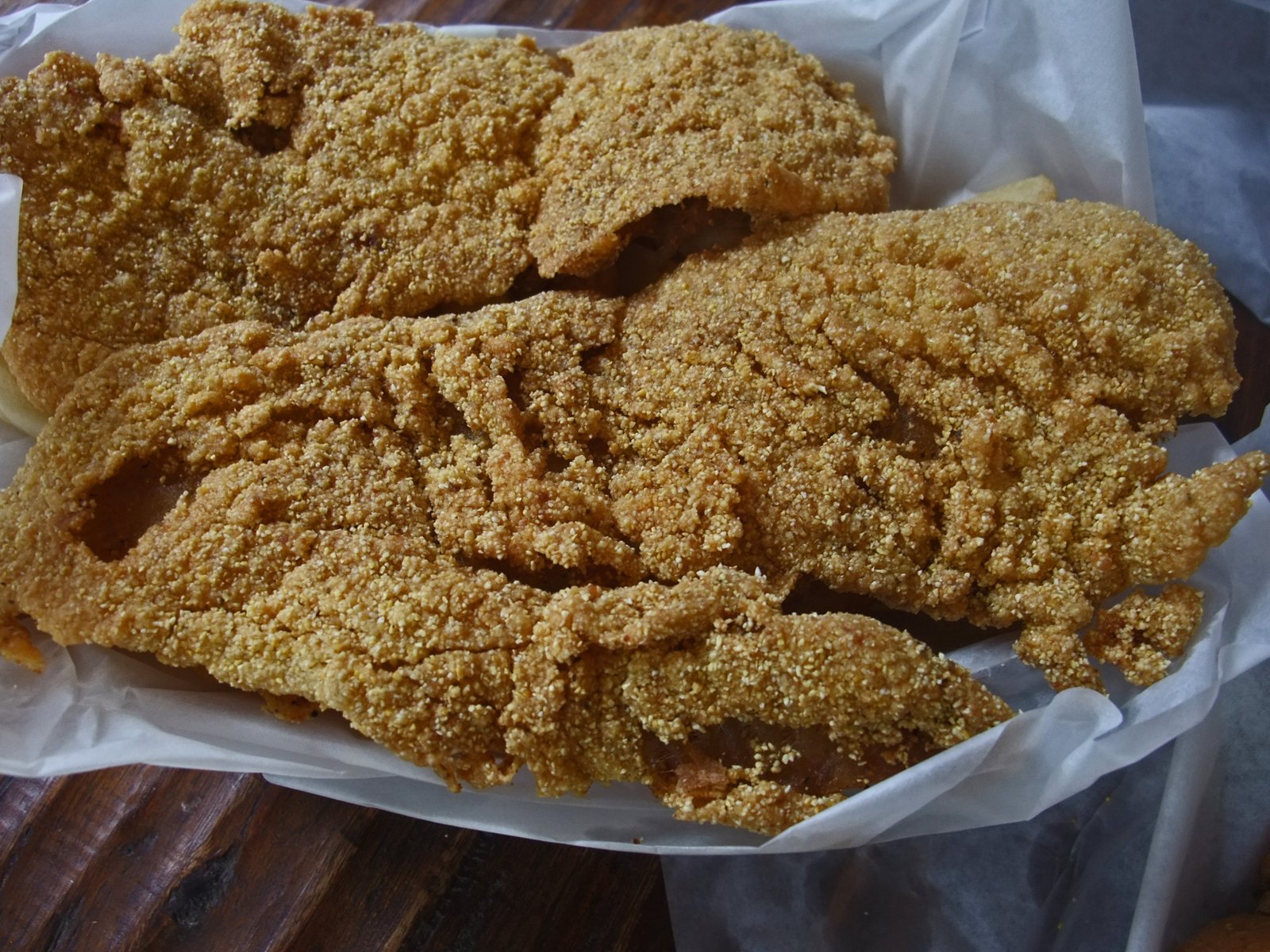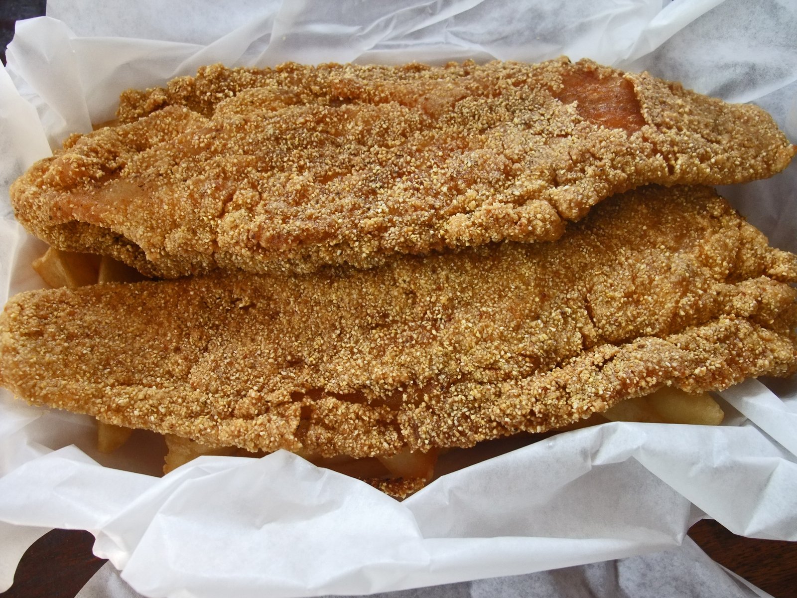 ImperialFish03 I placed my order with the older gentleman at the register…. he hollers out the order, one of the young men grabs the fish I ordered and passes to another young man, who asks me "plain or spicy" (need I really say how I ordered it?), dredges the fish in what looks like a cornmeal based breading.