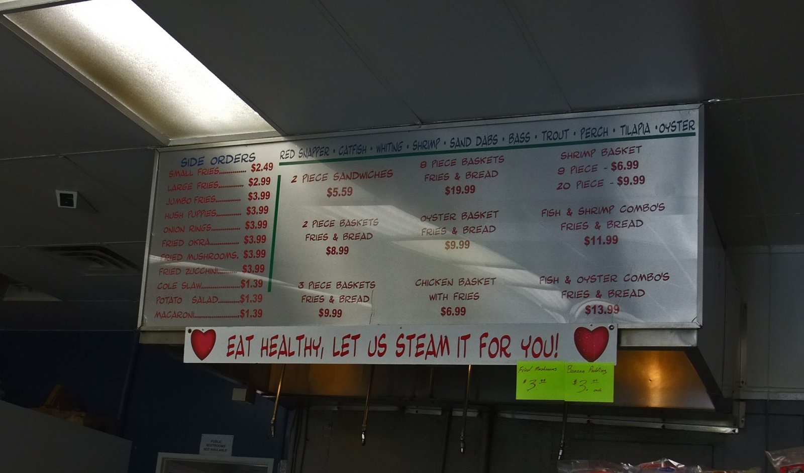When they say, "you buy – we fry" they're not kidding! A good variety of fish and other seafood is displayed in a large case.