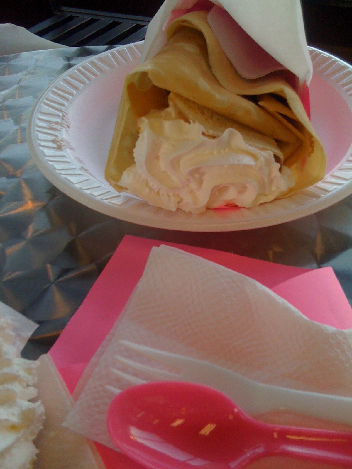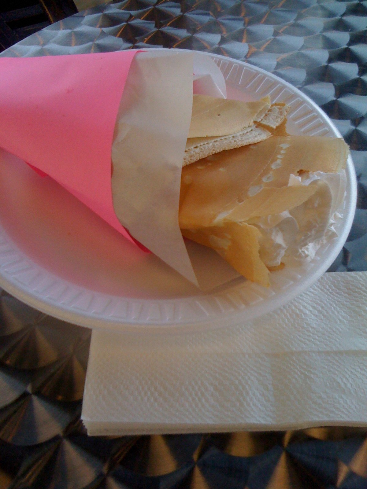 We ordered and each crepe was served up in pink paper cones. (click to see full photo)(Typepad is acting strange again)