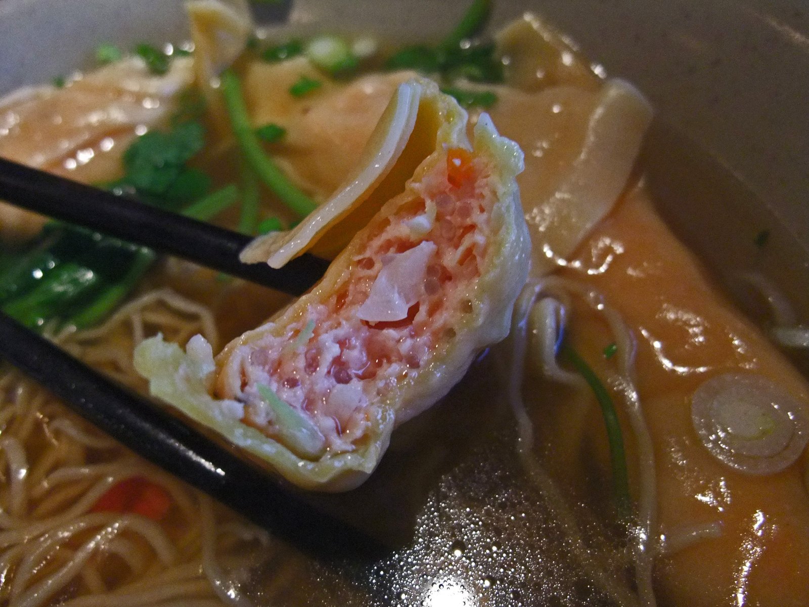 I ordered the Chicken soup with dumplings and egg noodles ($6.50). Well, actually I ordered Hu Tieu as my noodle, but I guess something got lost in the translation or perhaps the very nice Server decided to over-rule my decision.