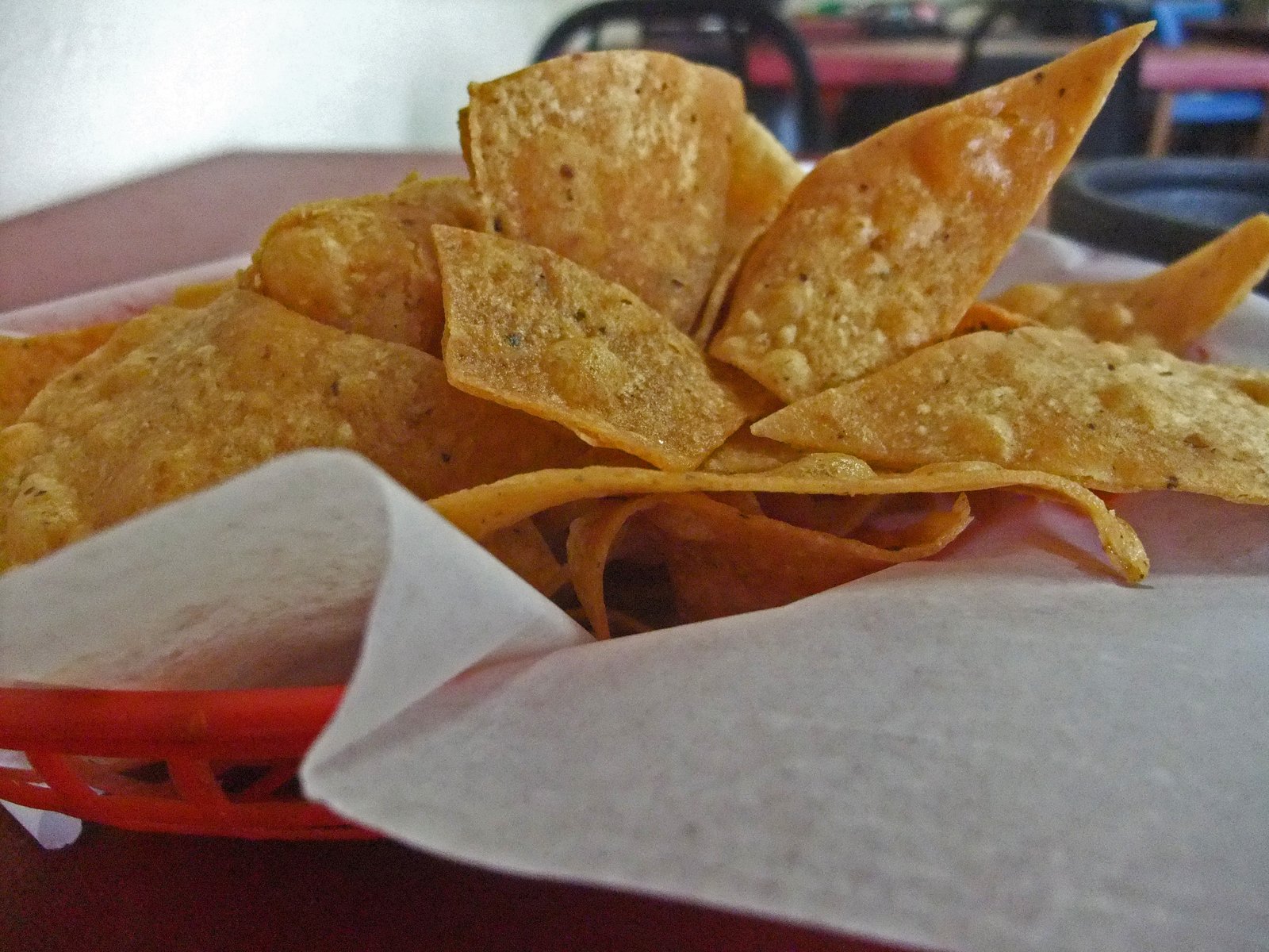 A few seconds later, some still sizzling tortilla chips hit the table:
