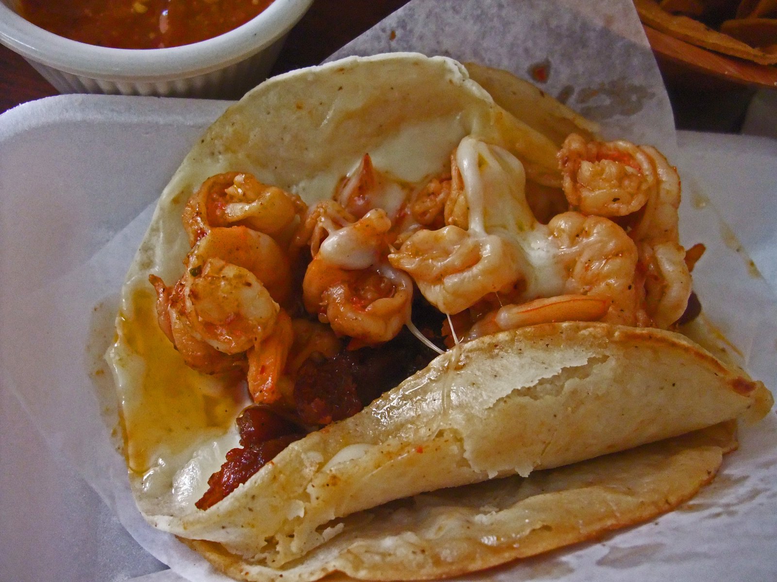 San Ysidro is a bordertown isn it? No one speaking English is a good sign…haha. The shrimp taco is making me HUNGRYY.