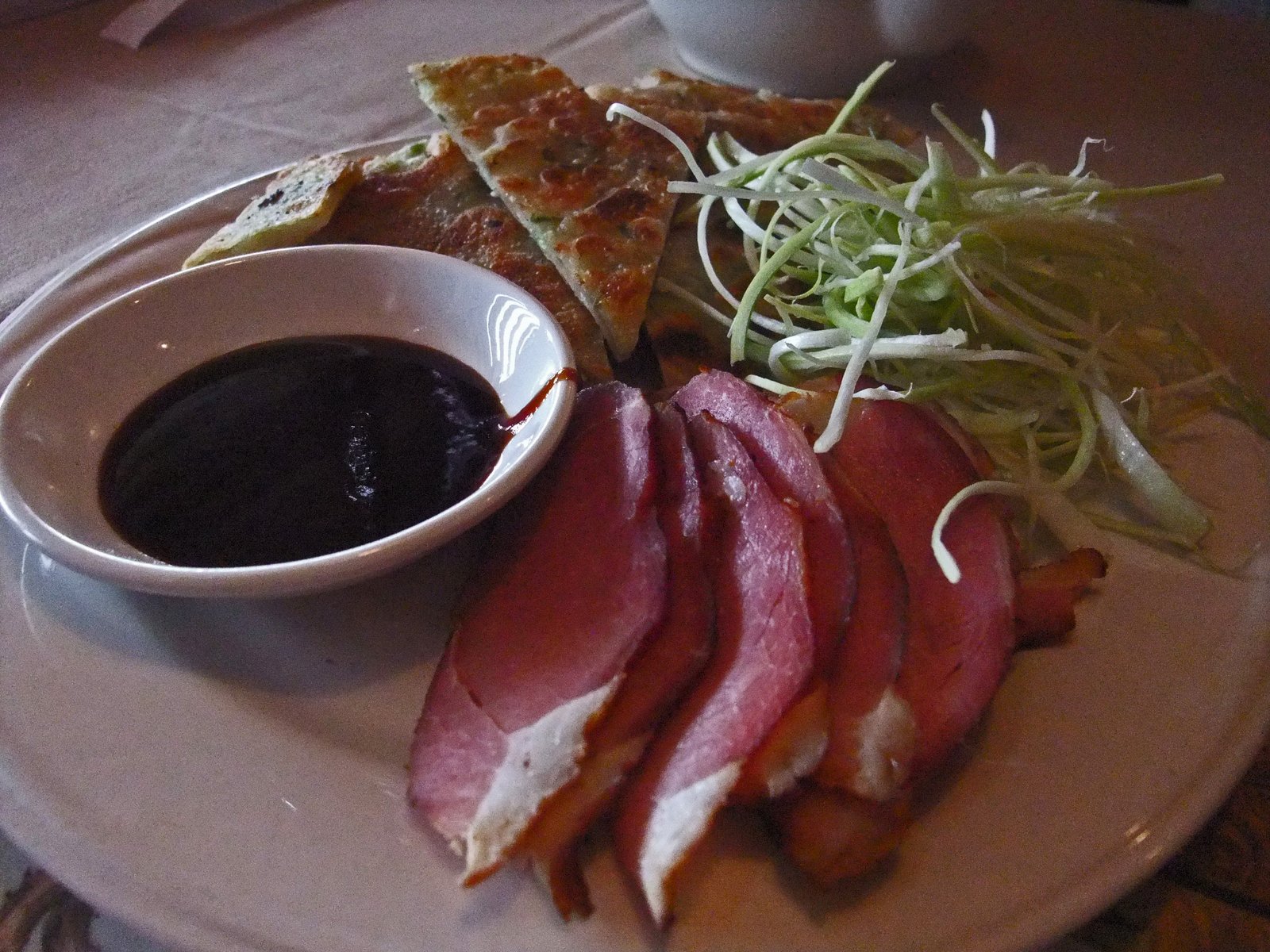 I probably would have enjoyed this much more if I hadn't had a wonderful version of this at Northern Restaurant in Rosemead. The smoked meat was very mild, and somewhat artificial in flavor, almost like the stuff you'd buy at 99 Ranch Market, and instead of a hearty and savory pork and fermented bean dipping sauce, this was straight up hoisin. The Da Bing was good, if a bit on the oily side, but it was actually the best part of the dish. I did consume all of it, because, well, I'm a sucker for these type of dishes. Overall, decent and I'll take that in a pinch.