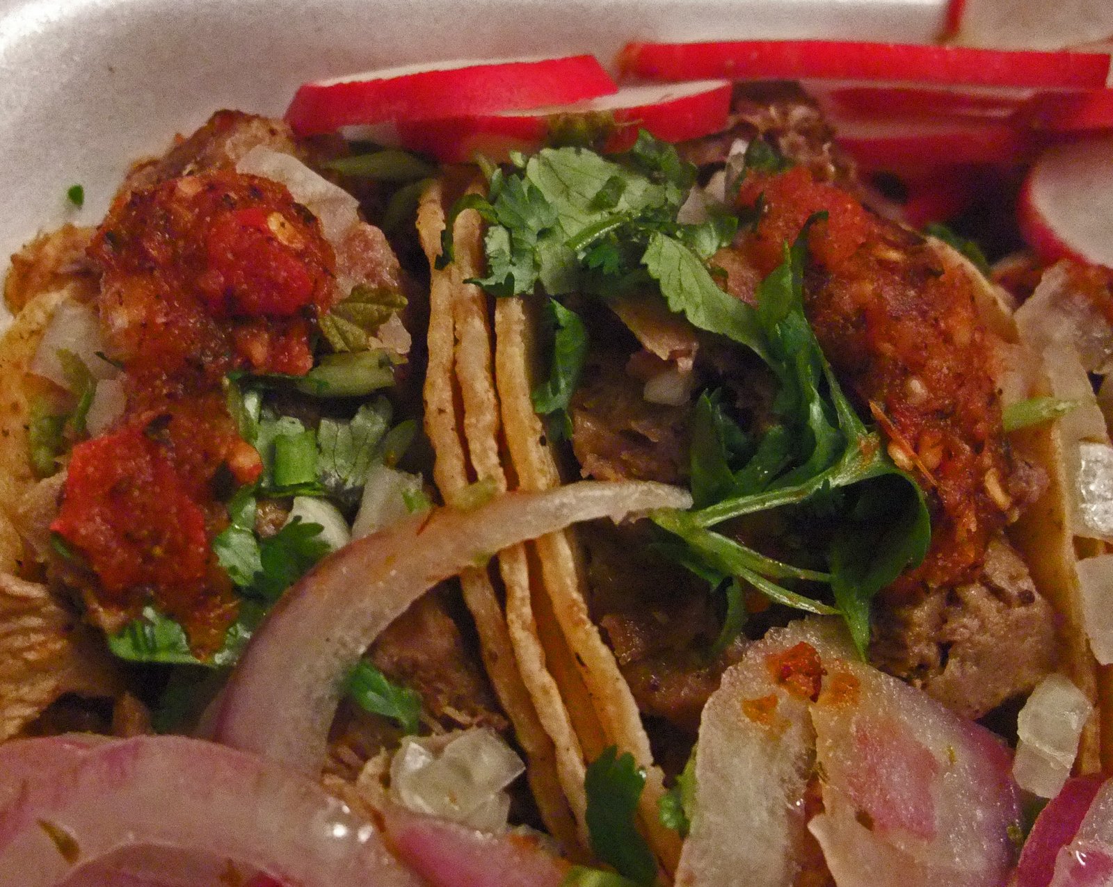 These weren't very large, but there were ten falafel on the styrfoam plate. The falafel were good, cirsp on the outside, with that excellent paradoxic falafel interior….. to us, it is both creamy and gritty at the same time. The falafel was served with a mild, and kinda runny yogurt based sauce, which didn't do anything for the falafel.