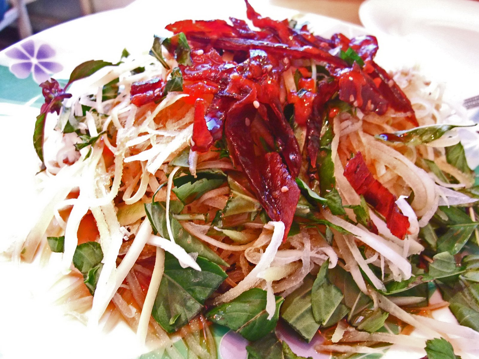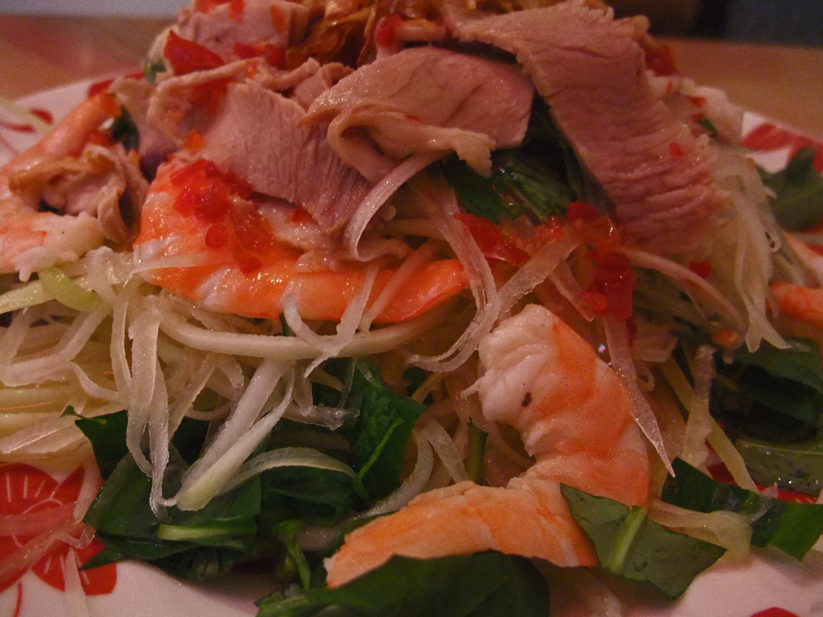 Having thought the papaya salad was pretty good last time around, we started with the Goi Xoai Tom Thit, the Green Papaya Salad with Shrimp and Pork.