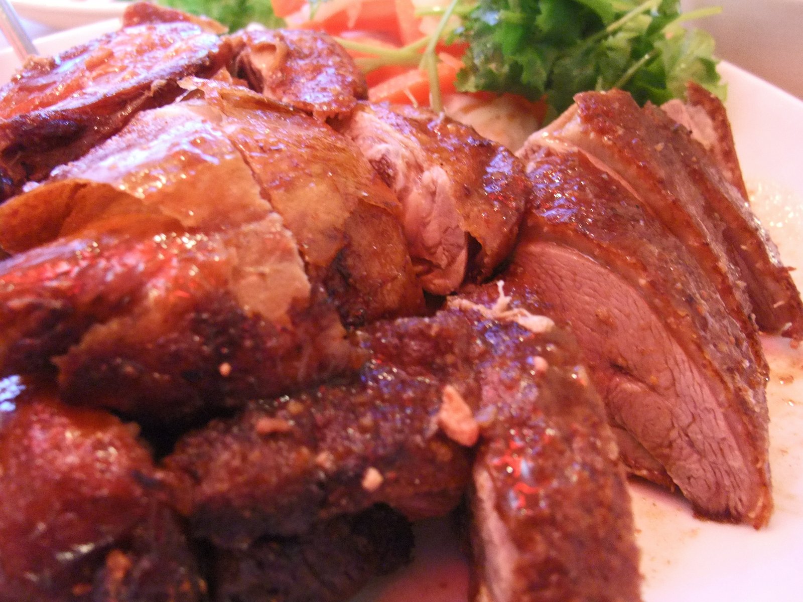 This was a bit of an "odd duck", no pun intended. It was very meaty, but sorely lacked a decent flavor….even the "drippings" were bland. The skin was strangely cracker-like, not the usual lacquered look and texture, but crumbly. I think this duck had been deep fried to revive it before serving. Personally, I'd take a more boney duck with good skin and great flavor.