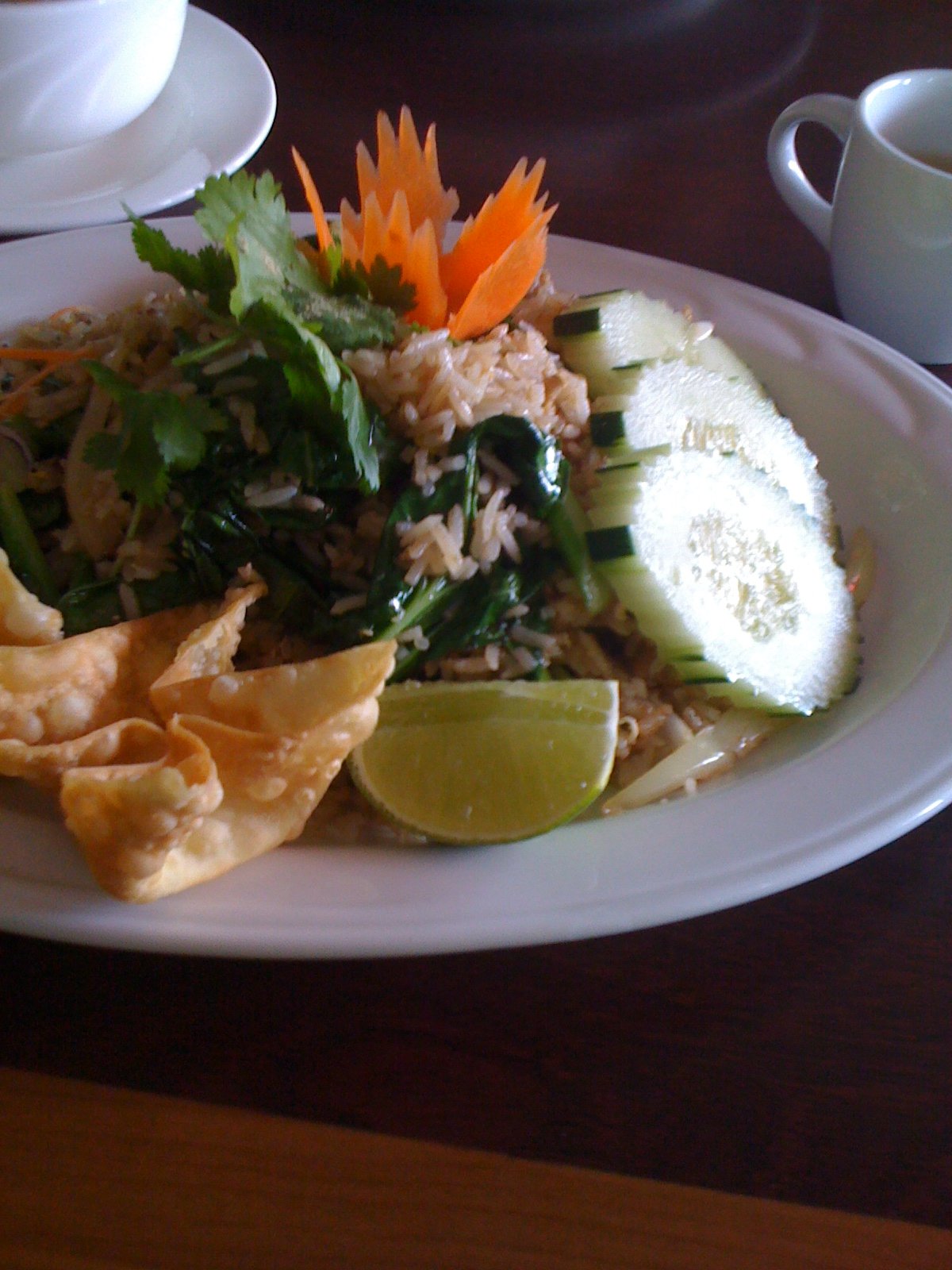 The Mister got one of the lunch specials- the pineapple curry with chicken ($7.95). This was something we never had had and it was very nice. Moist chicken, a rich, flavorful, coconut milk based curry. The portion size is very large, despite my wonderful illusionary photography skills.