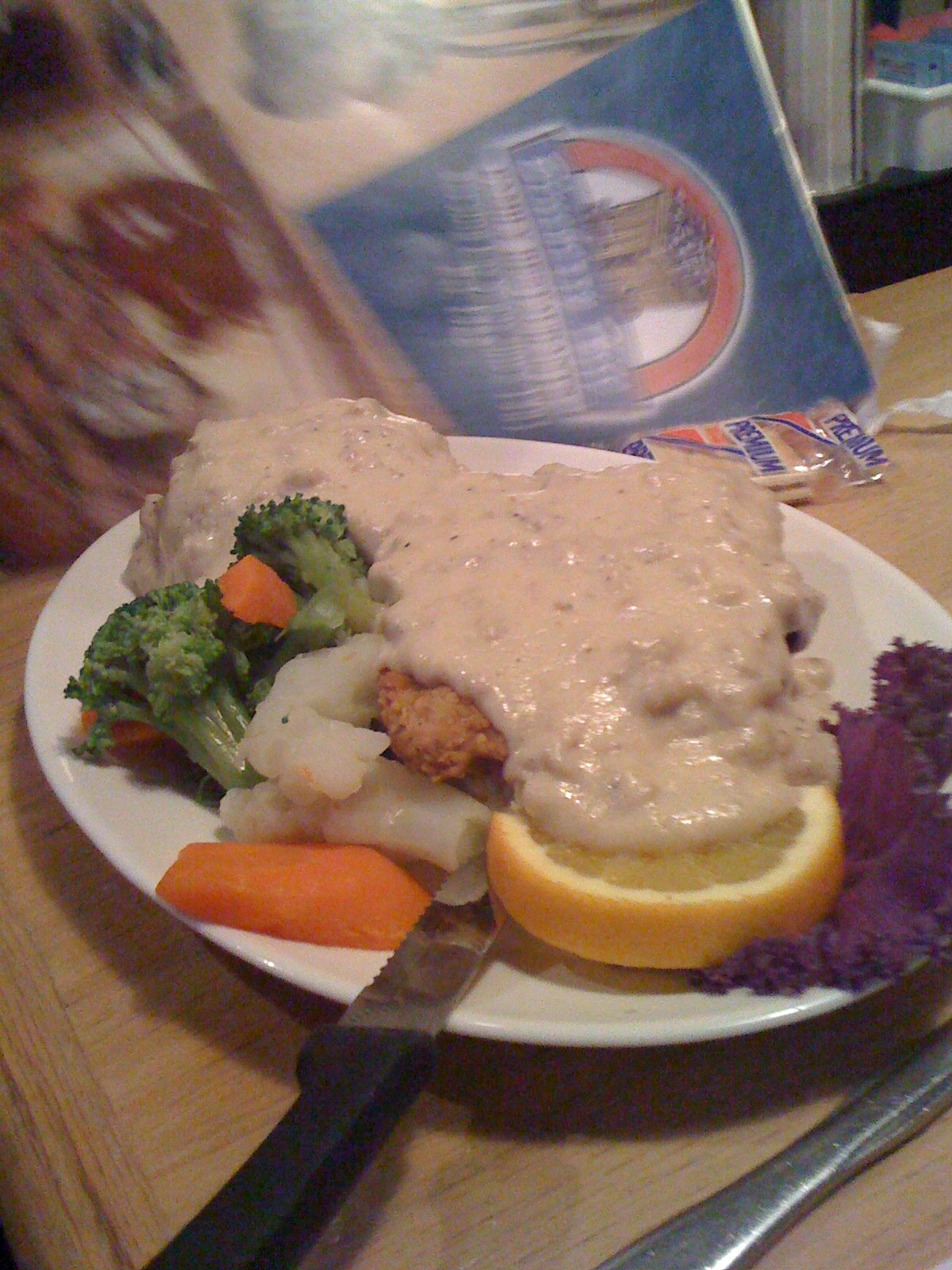 My brother ordered chicken fried steak.  Which came with the gravy on it.