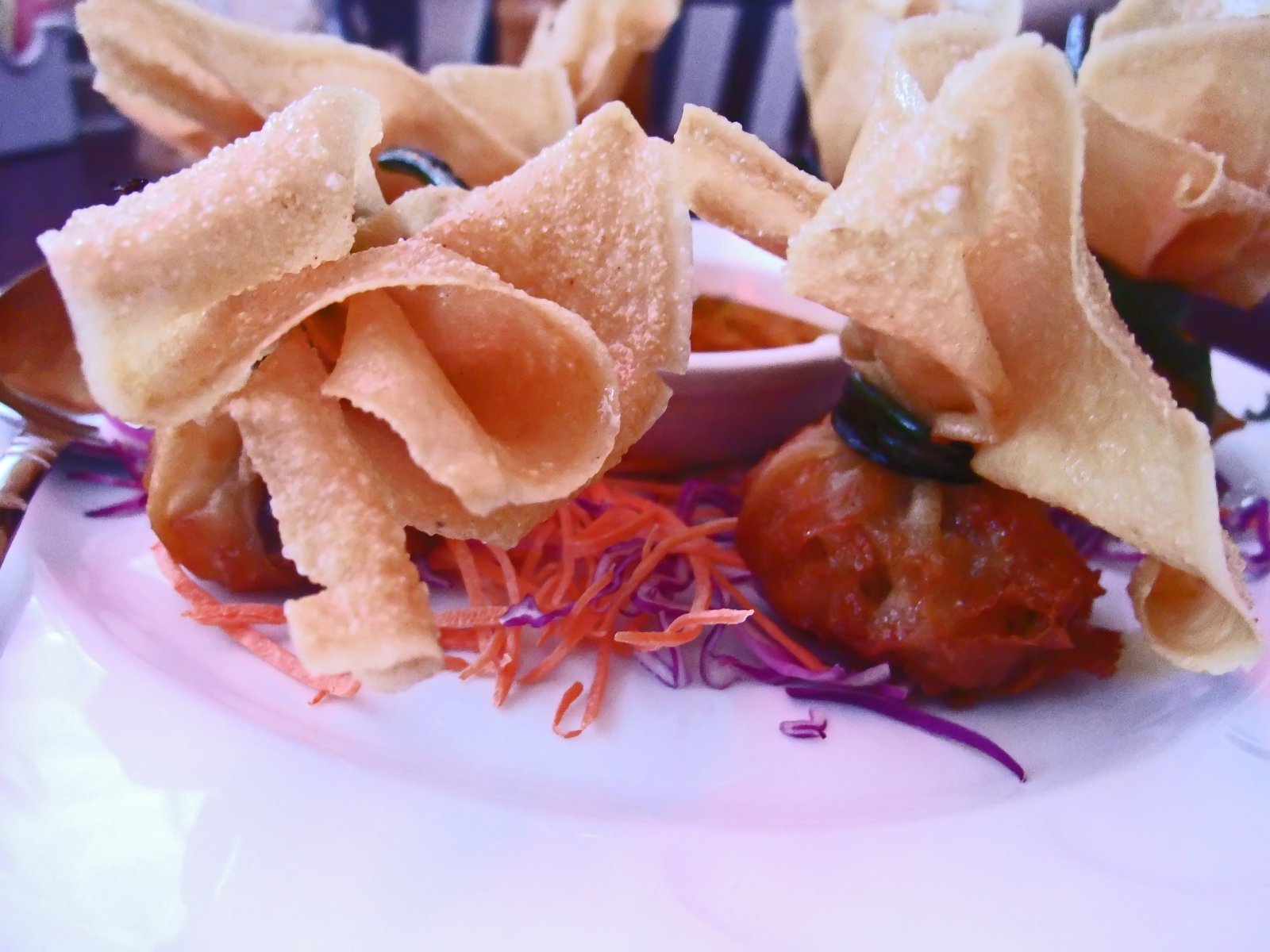 Think of these as Sab E Lee's fried won tons if you will. These "bags" are full of minced pork, shrimp, shiitake mushroom, and water chestnuts. While the portion of the "bag" holding the filling is almost crepe-like, the top portions are light and crisp.