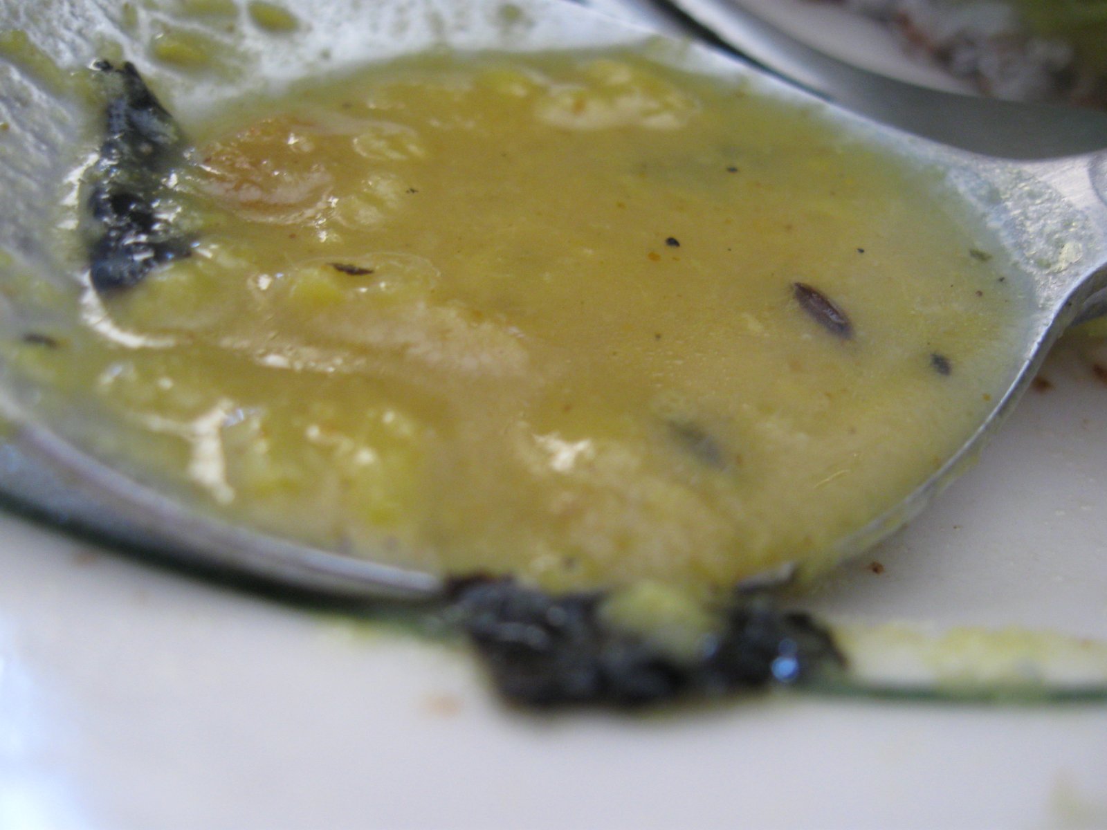 Every item on the plate was outstanding, and they went together perfectly. When the chef came out and asked me how I liked it, I was full of complements, because it did taste so wonderful. She then pointed out the black flecks that were across the top of the South Indian soup: