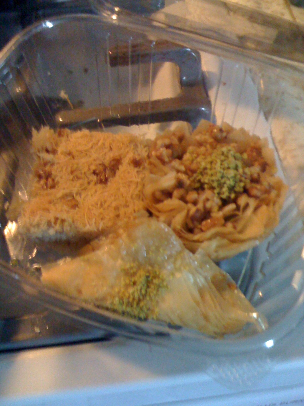 Everything here is sold by the pound, and *really* good. The sweets are made with a sugar-water mix, not honey…they are Turkish. You can taste the nuts and other fillings. Really, really good.