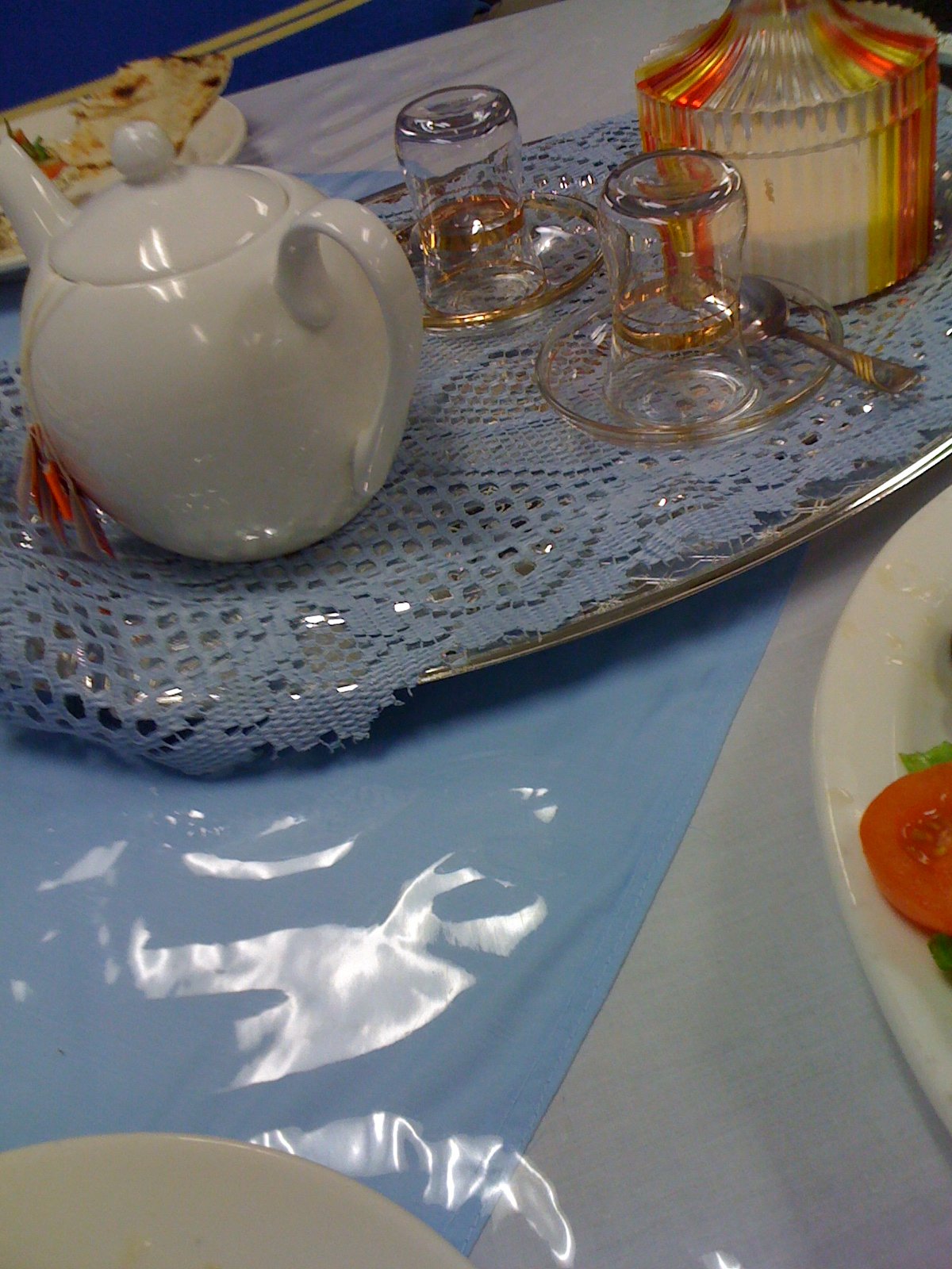 All meals come with hot tea. Served this way. Strong tea (4 bags in that pot)…beautiful teacups.