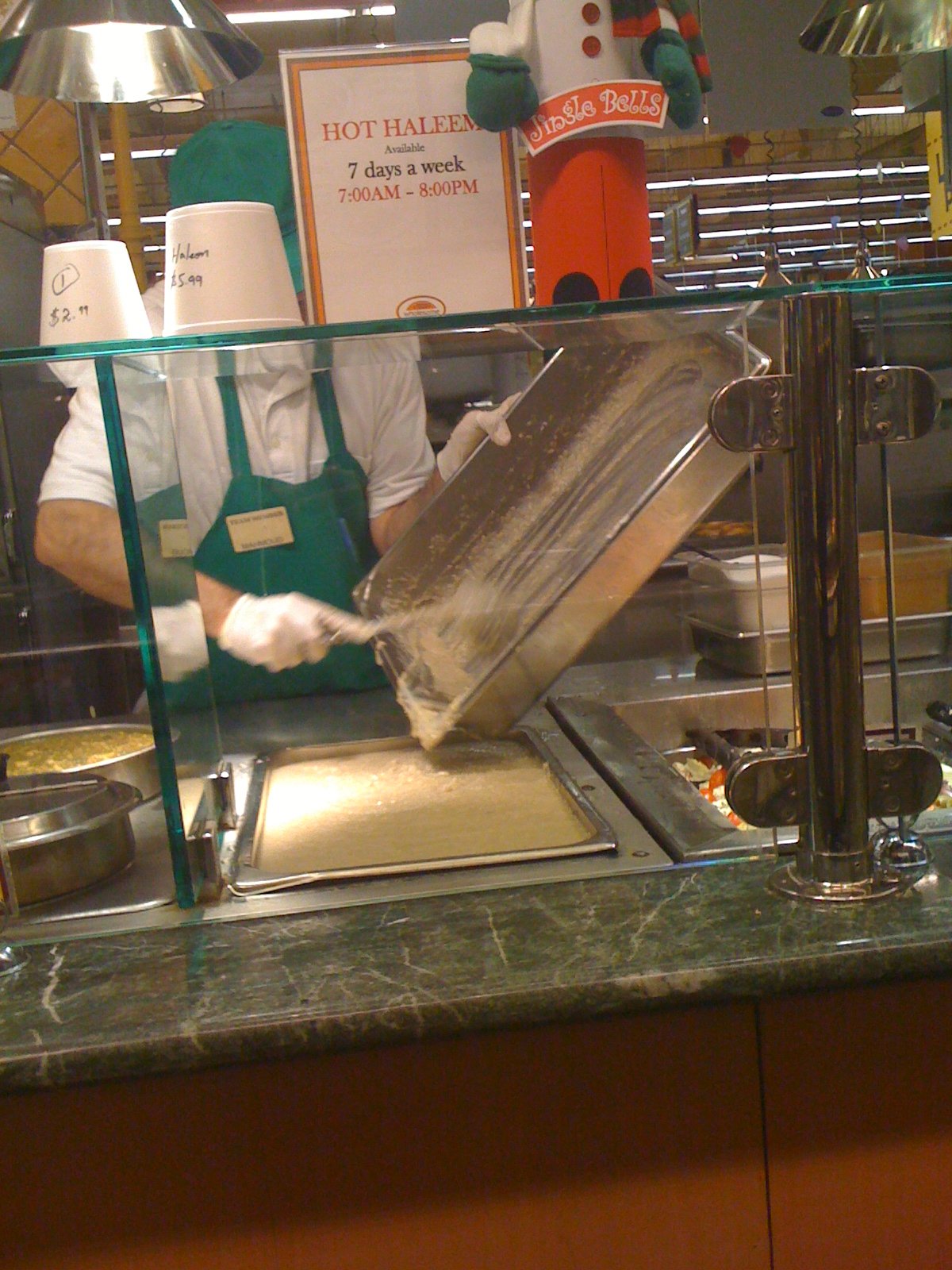 The store opens at 7 a.m. RT, and the Haleem (and its add-ins)is available then (see the sign), the ovens are baking at that time also. (The day we went was one of those post holiday sales days, which happens right after a day of a lot of eating and so grocery stores are not crowded). There was there was plenty of parking available in the lot. Leave here early and have an adventure. It’s a great way to spend a morning and then still have the day ahead of you.