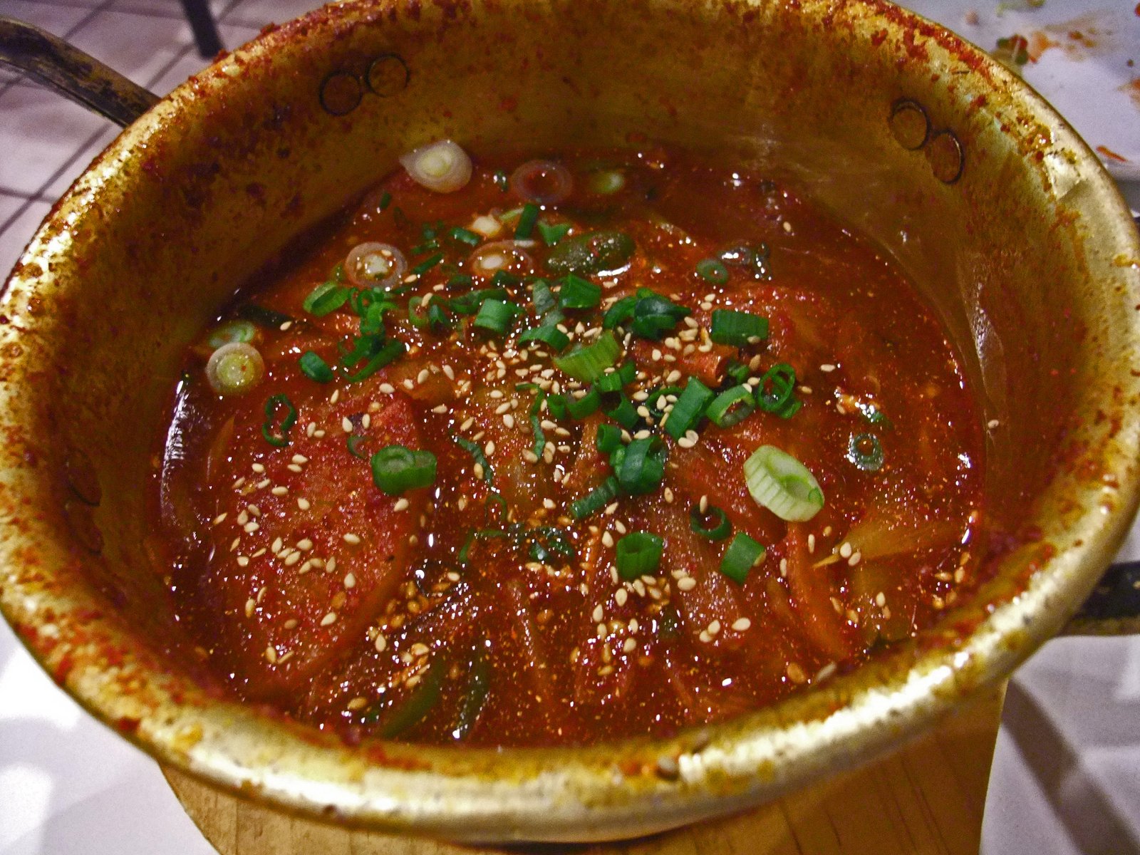 One thing is for certain….. this used to be the Rice King on Convoy. A couple of weeks ago I noticed that it had changed ownership, and identity. Mentioning this to MrS, I was told that the former Owner of Arirang, the one who is well known for her panchan, son runs the place. My first response was "doesn't he own Jeong Won?" MrS replied, "no it's her other son…. oh, and by the way, the son who used to run Jeong Won doesn't any longer. He got divorced and his wife got the restaurant." Which kinda explains why my last visit to the place was pretty bad overall. All of which led us to the place last evening…….