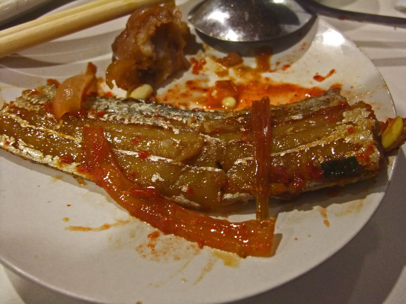 Mr S wasn't through, he had also ordered the Galchi Jorim (갈치조림 – basically simmered Beltfish).