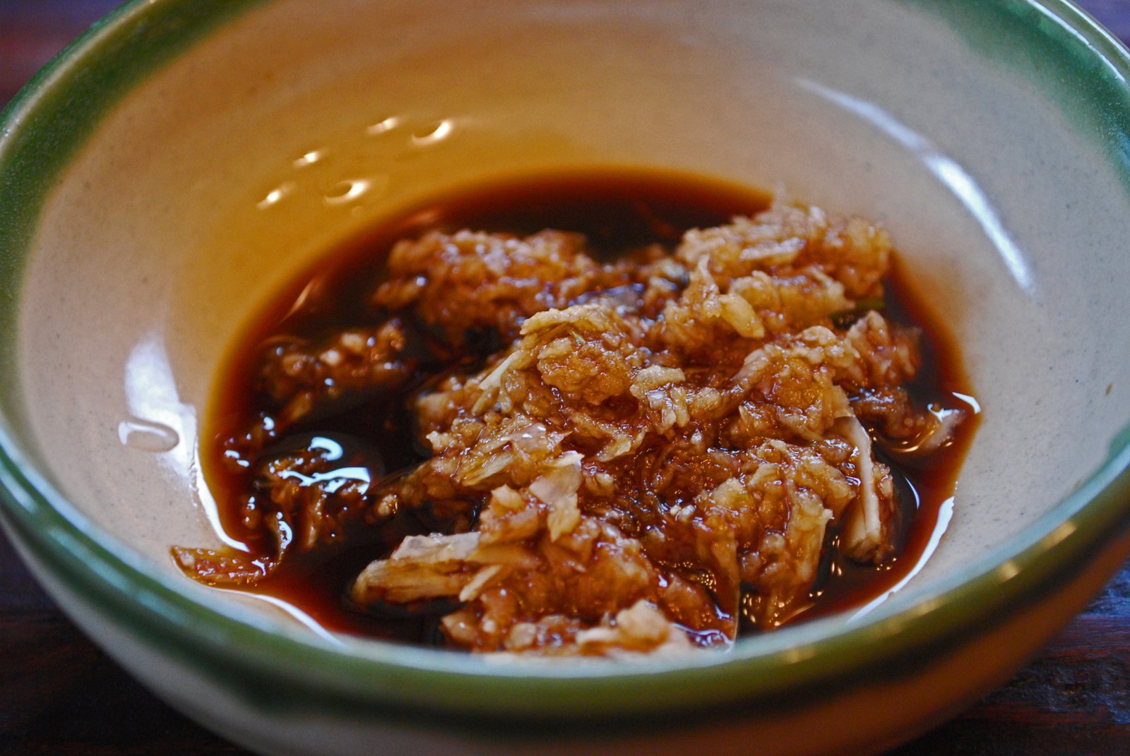 I'm including my photo of the pounded garlic and vinegar so the Missus can critique it and give me another thumbs down…. apparently, I still don't know how to do this! he-he-he…. I can't pound garlic in my own kitchen!