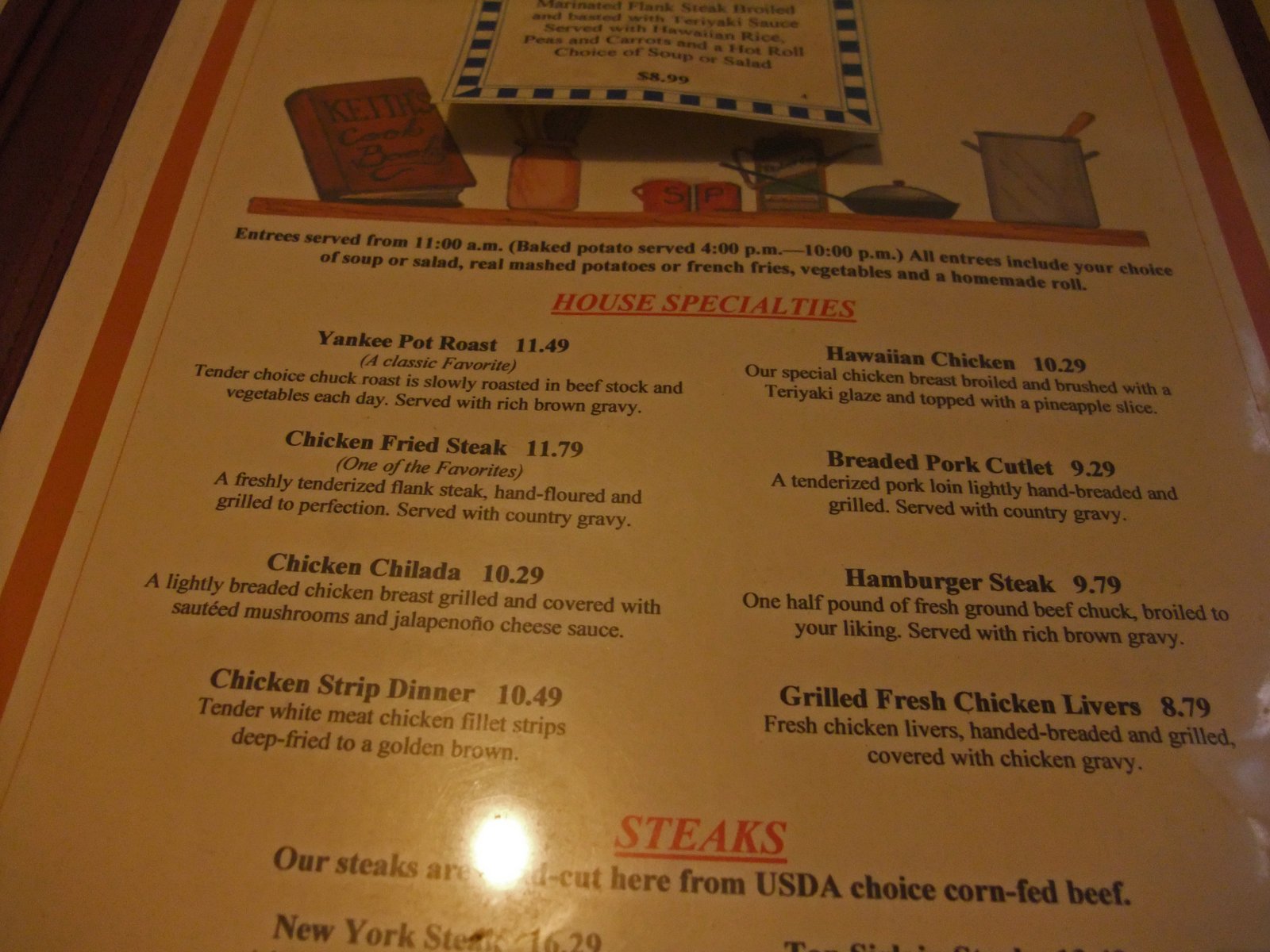Keiths02On the day we visited Keith's we'd arrive right before what would be considered a normal dinner service. We grabbed a table, and soon enough our menus arrived.