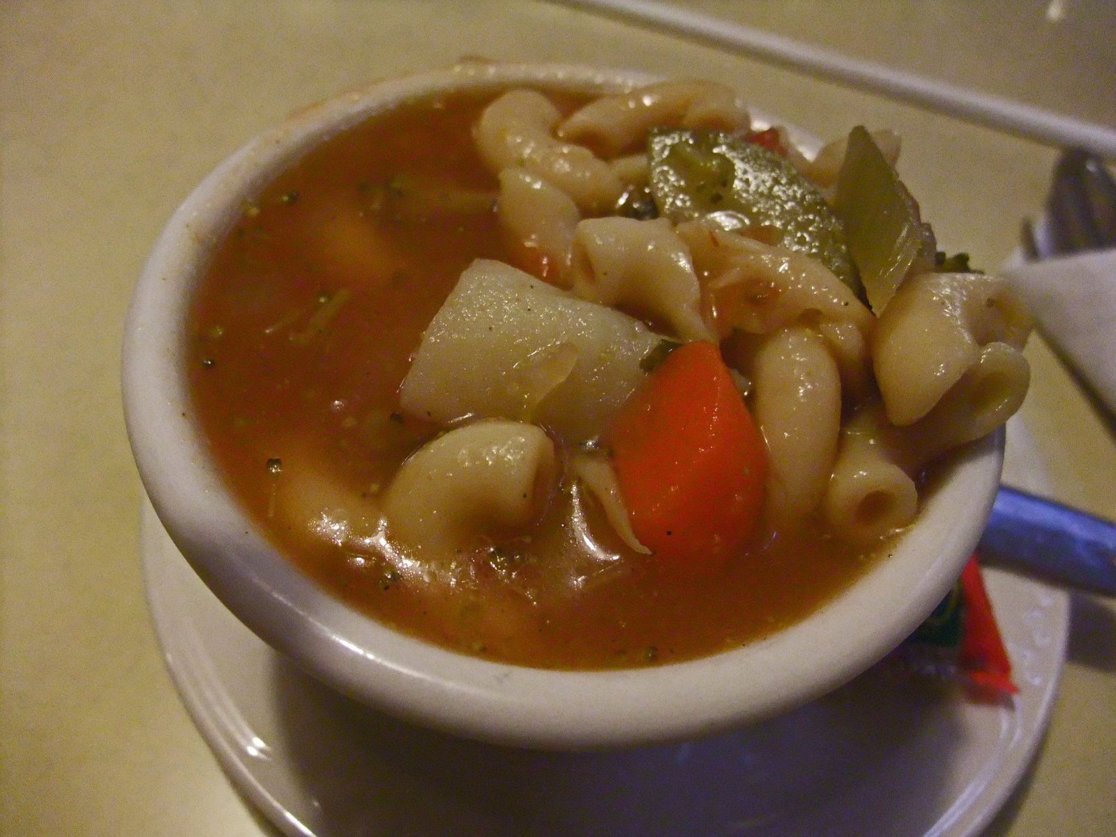 The entree I ordered started with a Macaroni Soup: