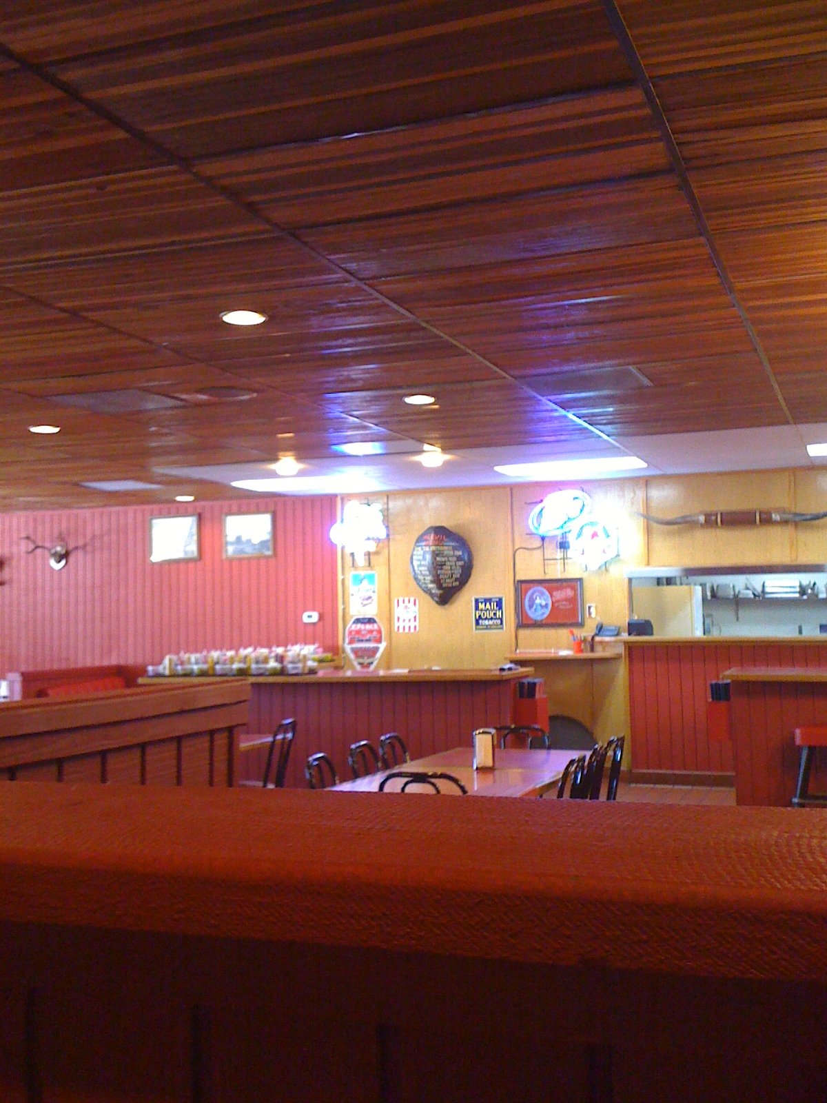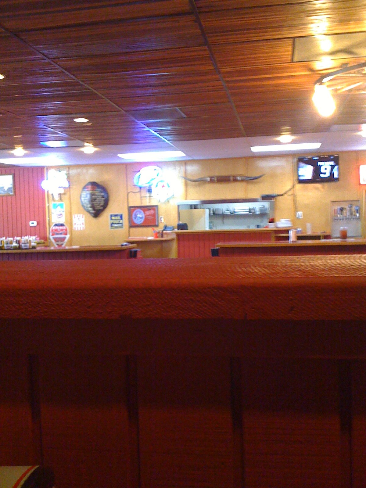 The interior is essentially the same, just cleaned up a bit (the original menu with prices is printed on that endangered species green sea turtle shell on the wall) with 4 flat screen televisions.