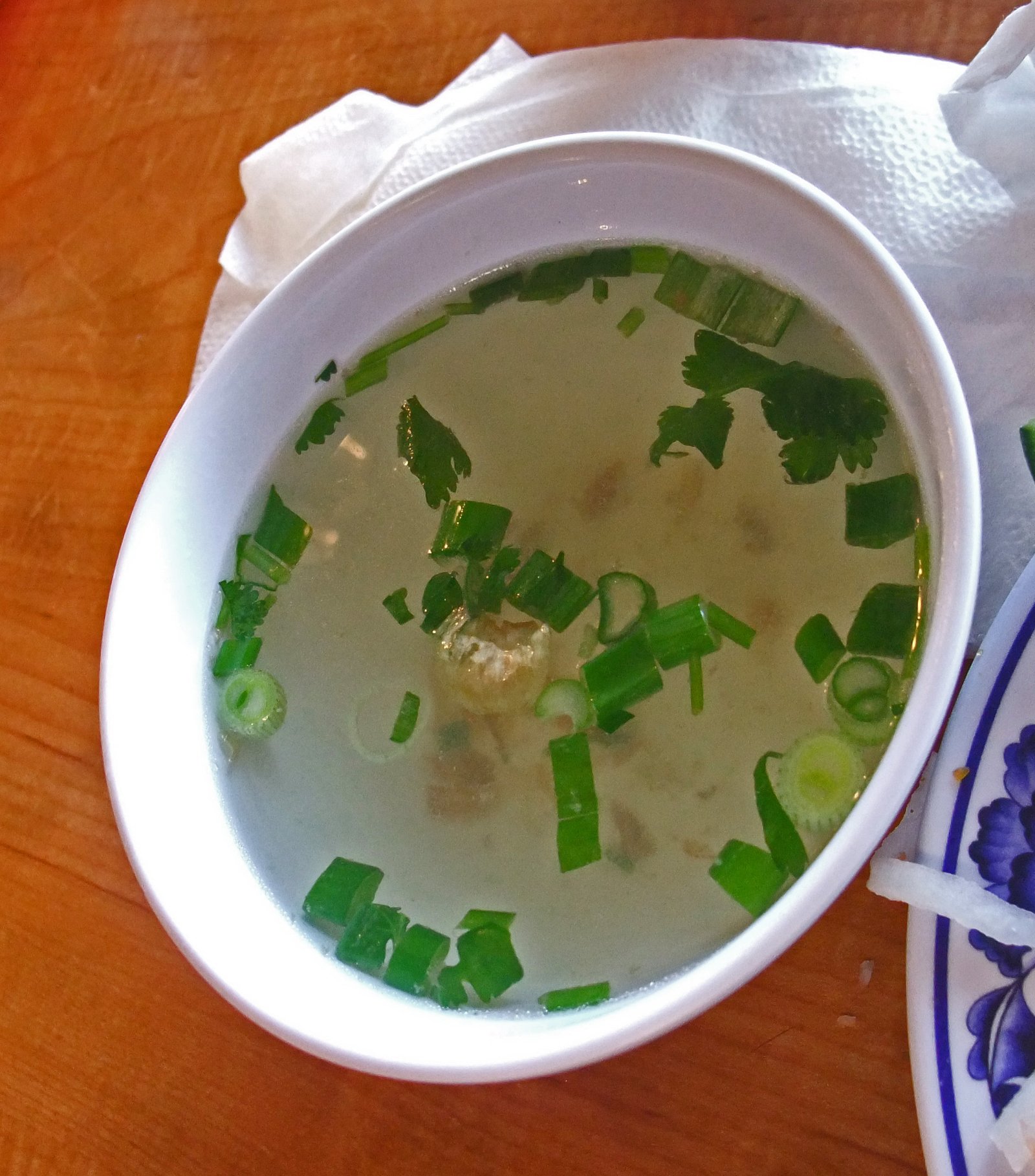 While eating, I was wondering why my meal didn't come with any broth. Well, just as I was finishing up, a bowl of broth was dealt out on my table…. sigh….. Here's another variation of the "appetizer sin", you know, when your appetizers come at the end of your meal. I guess in this case, the broth was dessert?