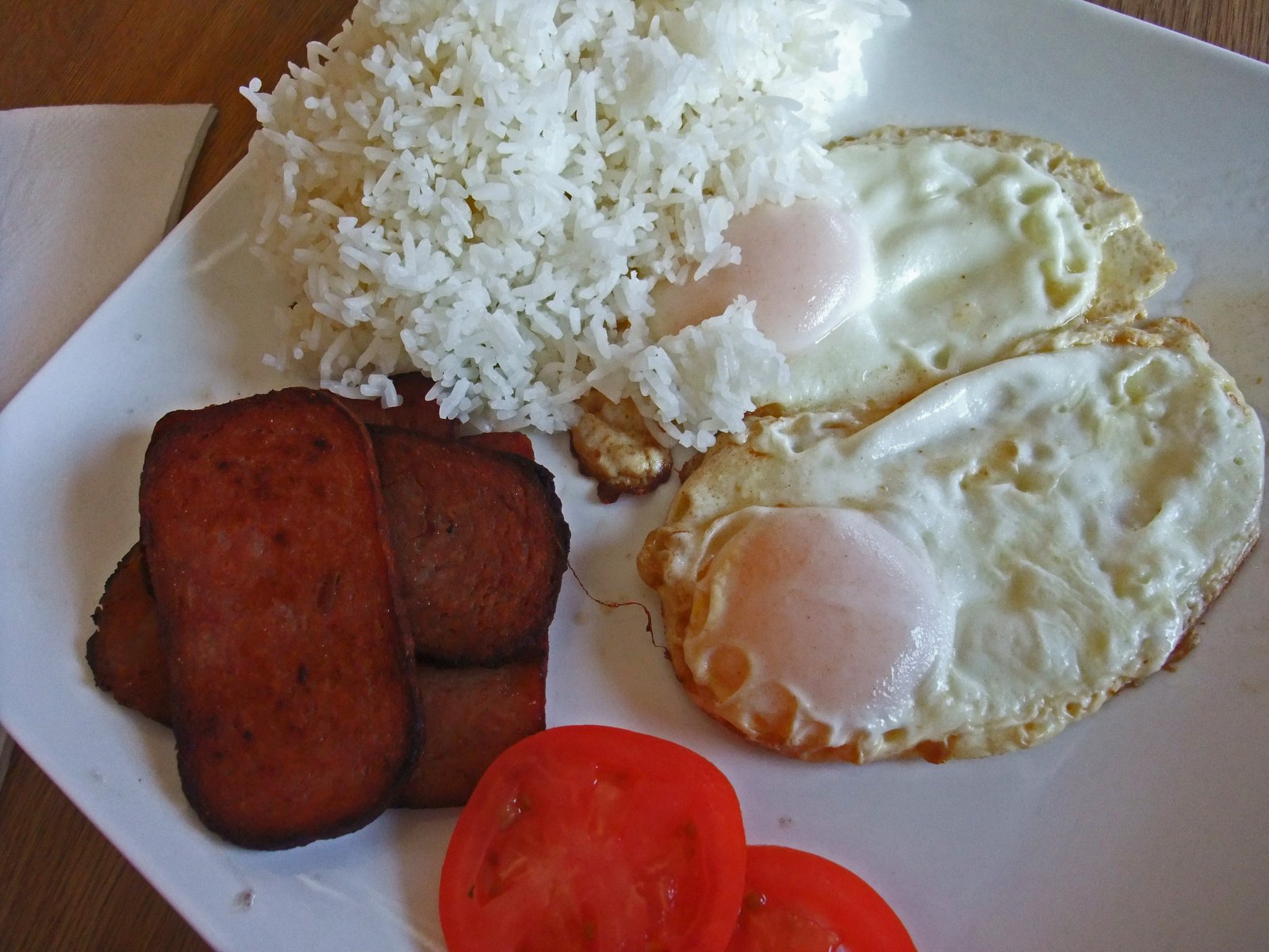 I love how it’s possible to get Spam and eggs and rice at a restaurant! No such luck here – I have to cook it at home!