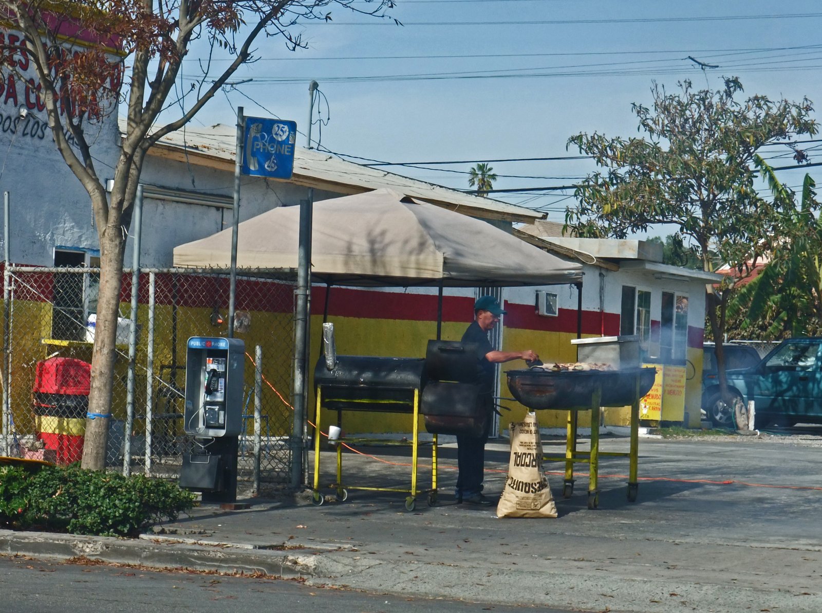 Almost every weekend, I've seen the guy in the parking lot grilling chicken.