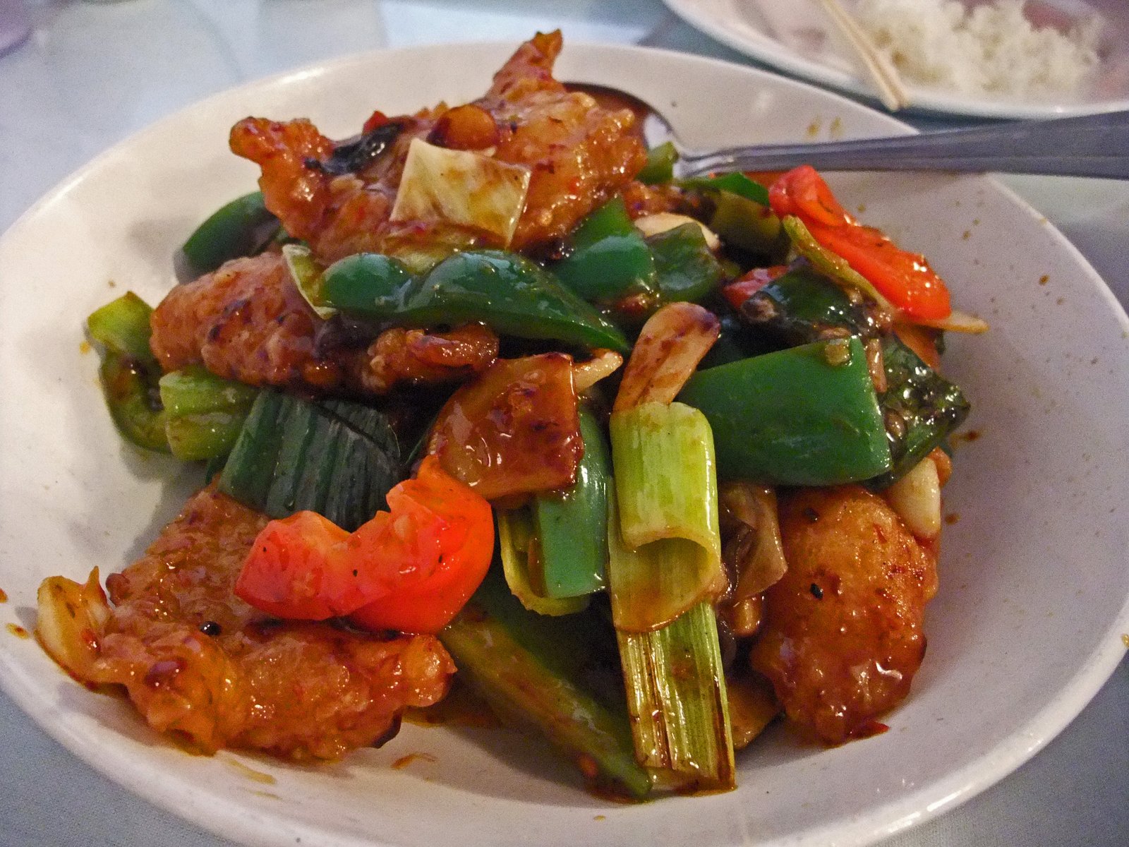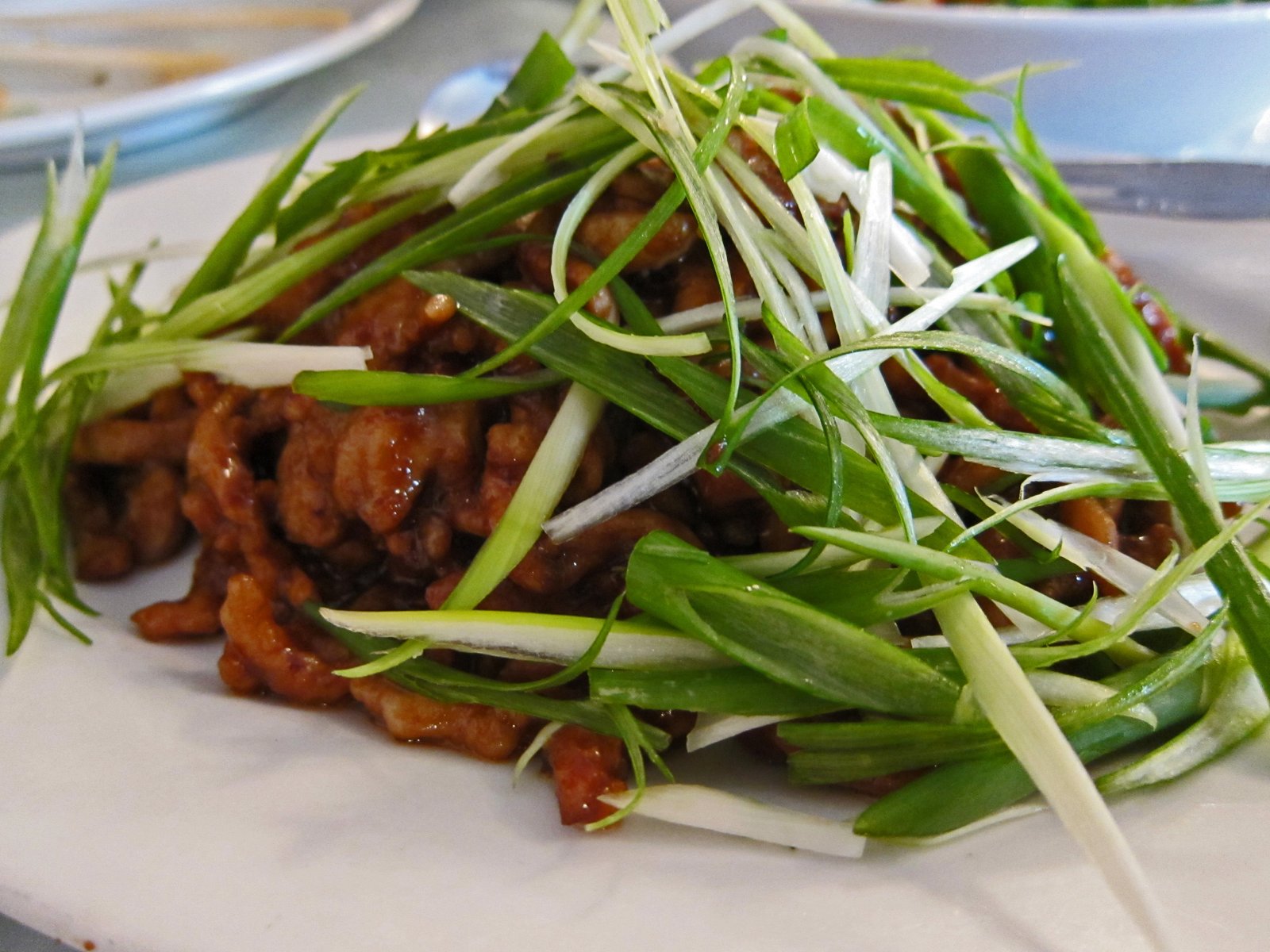 Man, this was good. Just the right ratio of salty and sweet, and a nice savory bean paste kick with perfectly wokked pork. So here's another dish for those who can't tolerate spicy.