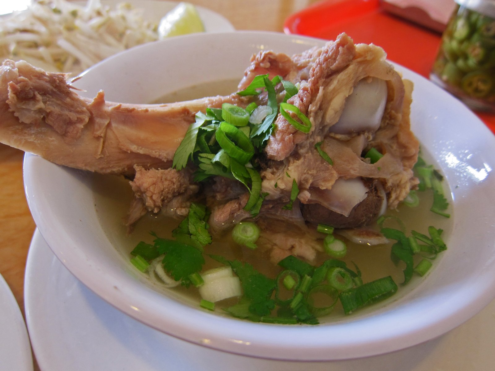I believe this is the first time I've had this without any offal in it. There are two slices of pretty lean, and somewhat chewy pork, that are decently flavored, and a couple of shrimp. Some ground pork floats around in the broth which is fairly light, somewhat porky, with some nice salty tones (MSG). The blanched bean sprouts adds texture and flavor to everything. But…….. this doesn't hold a candle to the "dry" (Kho) version, also $4.77: