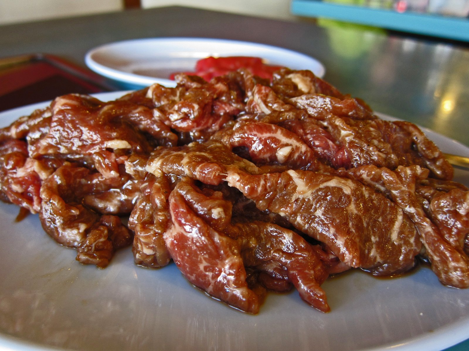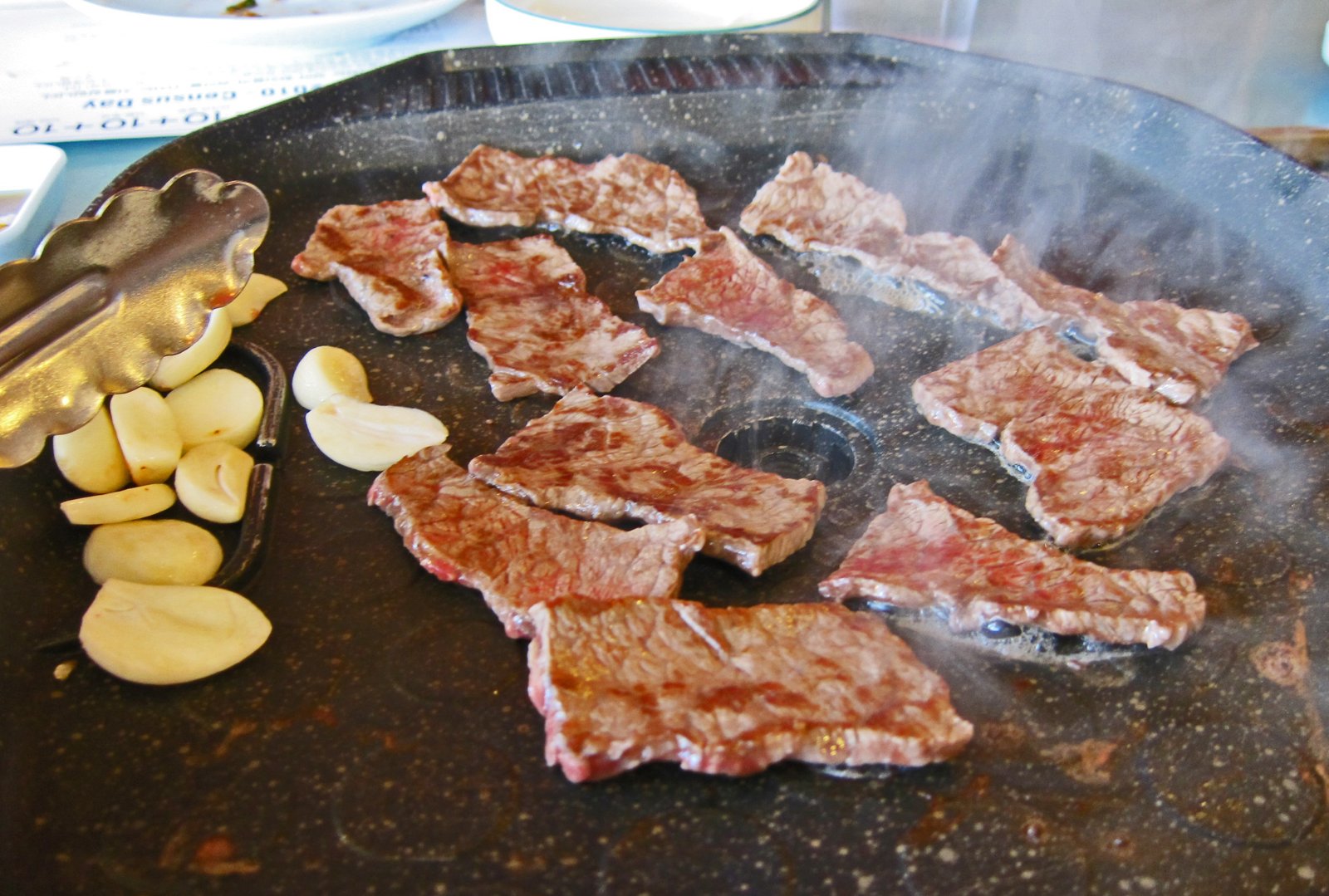 Knowing that the owner runs a meat market, where I've purchased some pretty good quality beef before, I was expecting something good. And the menu clearly states that the beef here is "CAB", no not that CAB (and don't even think about Carne Asada Burrito), but Certified Angus Beef. As to whether he's able to make, or has hired someone who could do good Korean BBQ…. well that remained to be seen. The woman and two young men working the front of house were obviously a bit disorganized. After I placed my order with one of the young men, the other came over a few minutes later to take my order. After I explained to him that I'd placed my order, about two minutes later the woman came over to take our order. This made me a bit nervous….. but the young man who originally took my order assured me that my order had been placed. You can tell they were really trying hard, and need to work the kinks out.