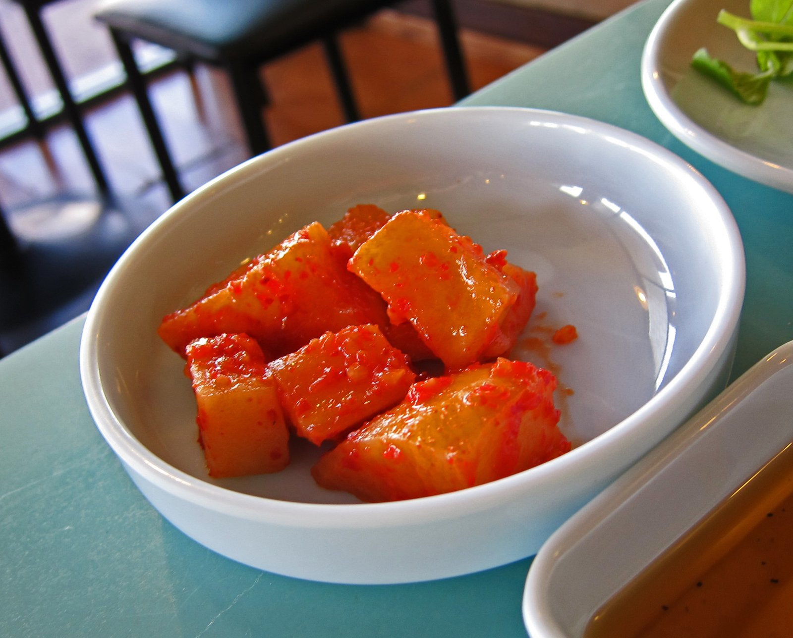 There wasn't much panchan, only some great tasting tofu, and pretty bland radish.