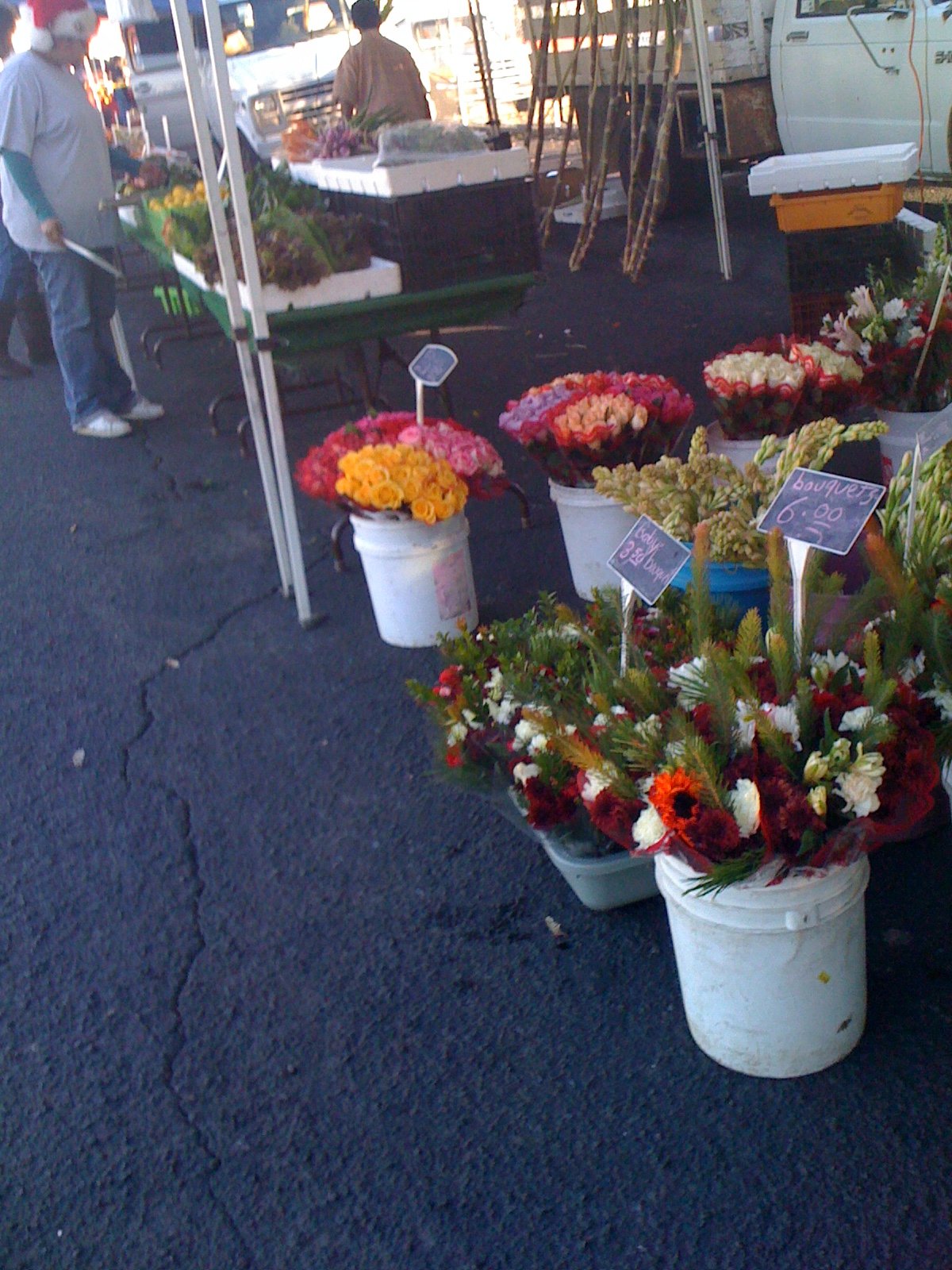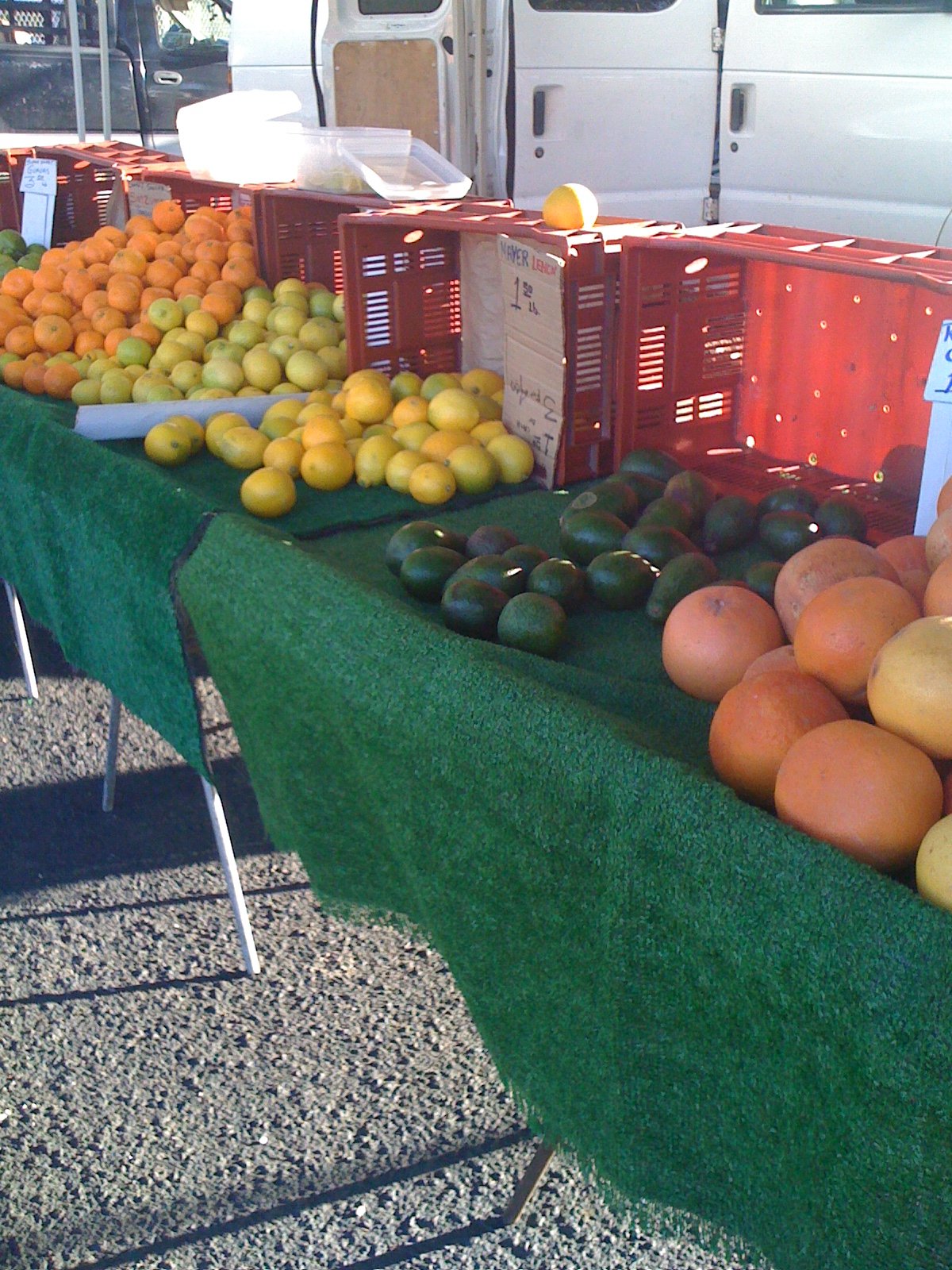 This past Wednesday it was raining and not as many vendors were set up. Citrus is in season. (The funny looking oranges on the left are Italian Blood Oranges).