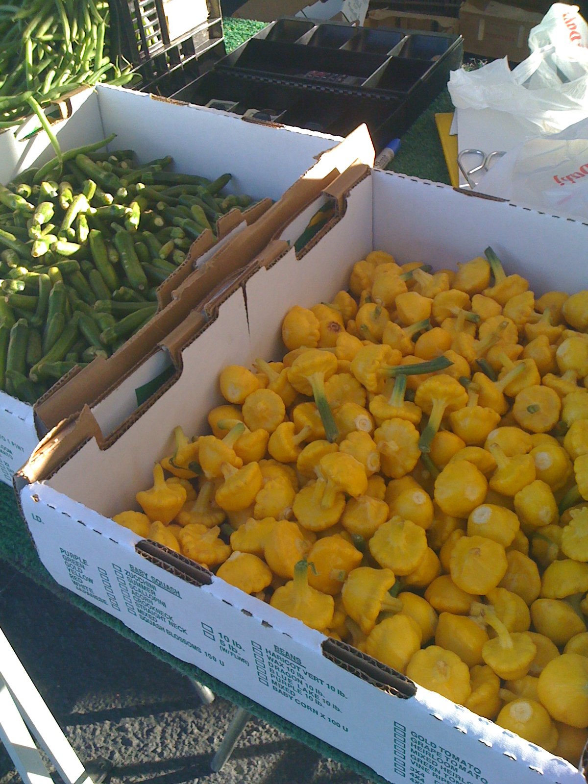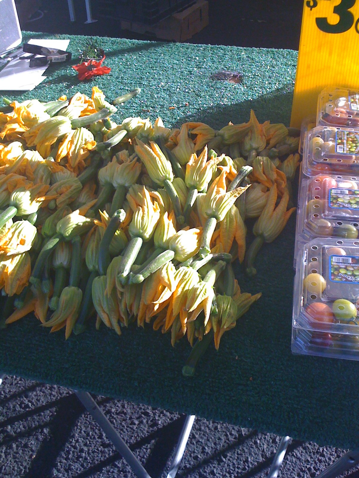 Some with blossoms. (All the baby squash and blossomed squash were $5/lb; we had a delightful meal of cheese stuffed fried blossoms a few weeks ago).