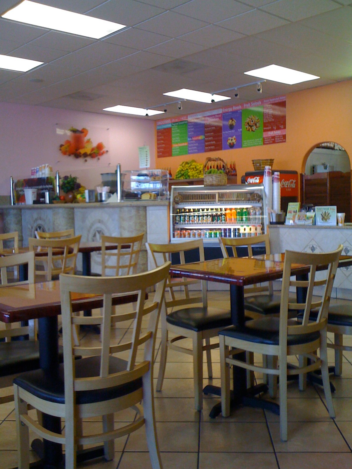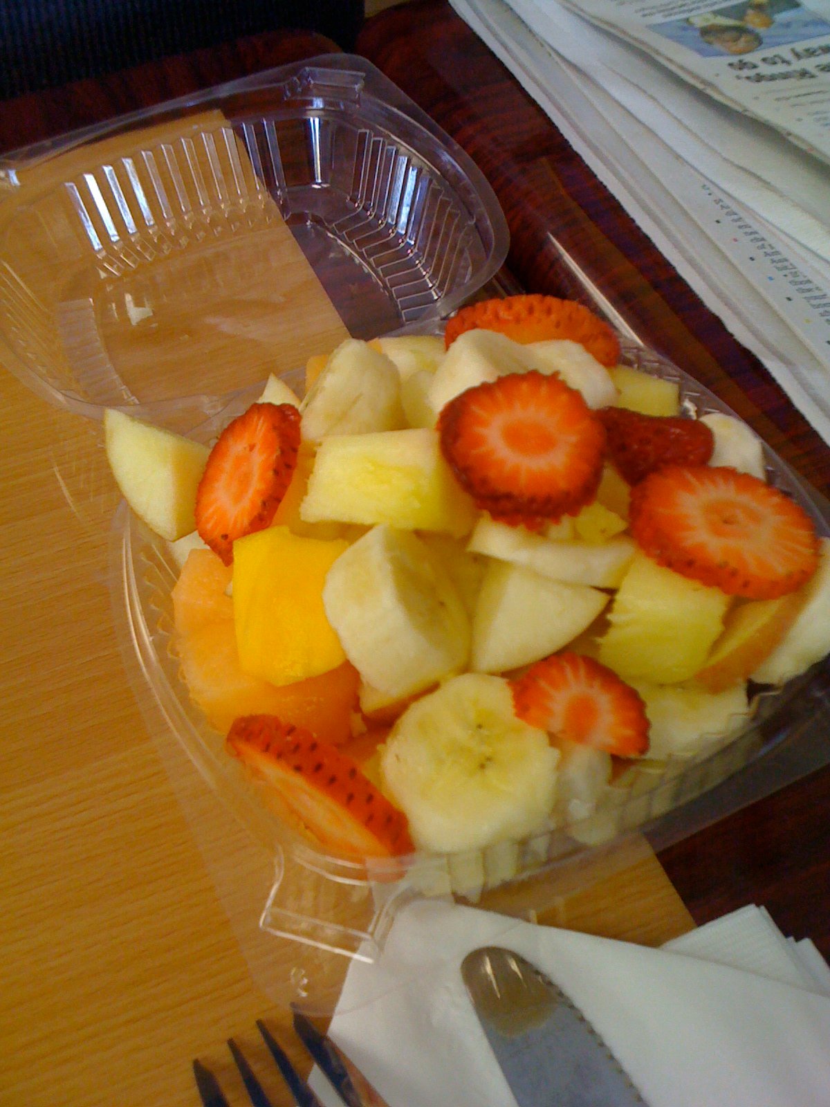 First, we ordered a small bowl of fresh fruit ($4.49), cut up just for us (which is the same as when a smoothie or fruit juice is ordered-fresh fruit that is available, not frozen fruit). Banana, apple, pineapple, cantaloupe, papaya and strawberries. Very fresh, flavorful fruit.