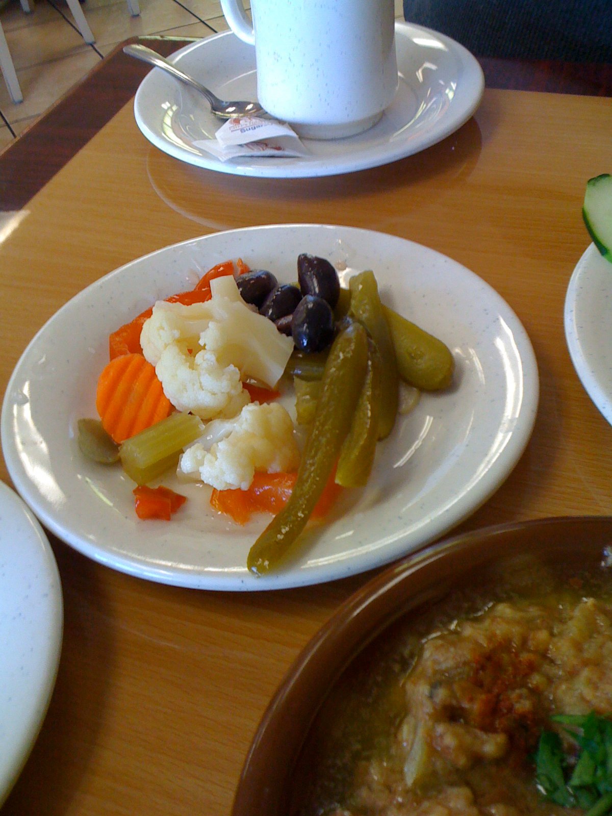 The pickles and bread accompanied my most wonderful hot breakfast of Foul Mudammas ($5.99) A 30 year old family recipe of warm, cooked fava beans, mashed then mixed with fresh garlic and lemon juice, topped with olive oil.