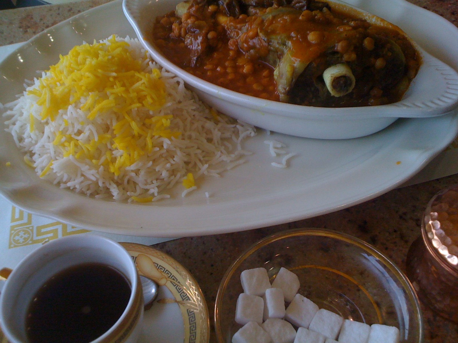 The Mister ordered the Ghorme Sabzi-Vegetable stew ($9.99) a baby lamb shank cooked with red beans, lime ad fresh herbs. The meat was tender and flavorful as was the accompanying stew. Really good.