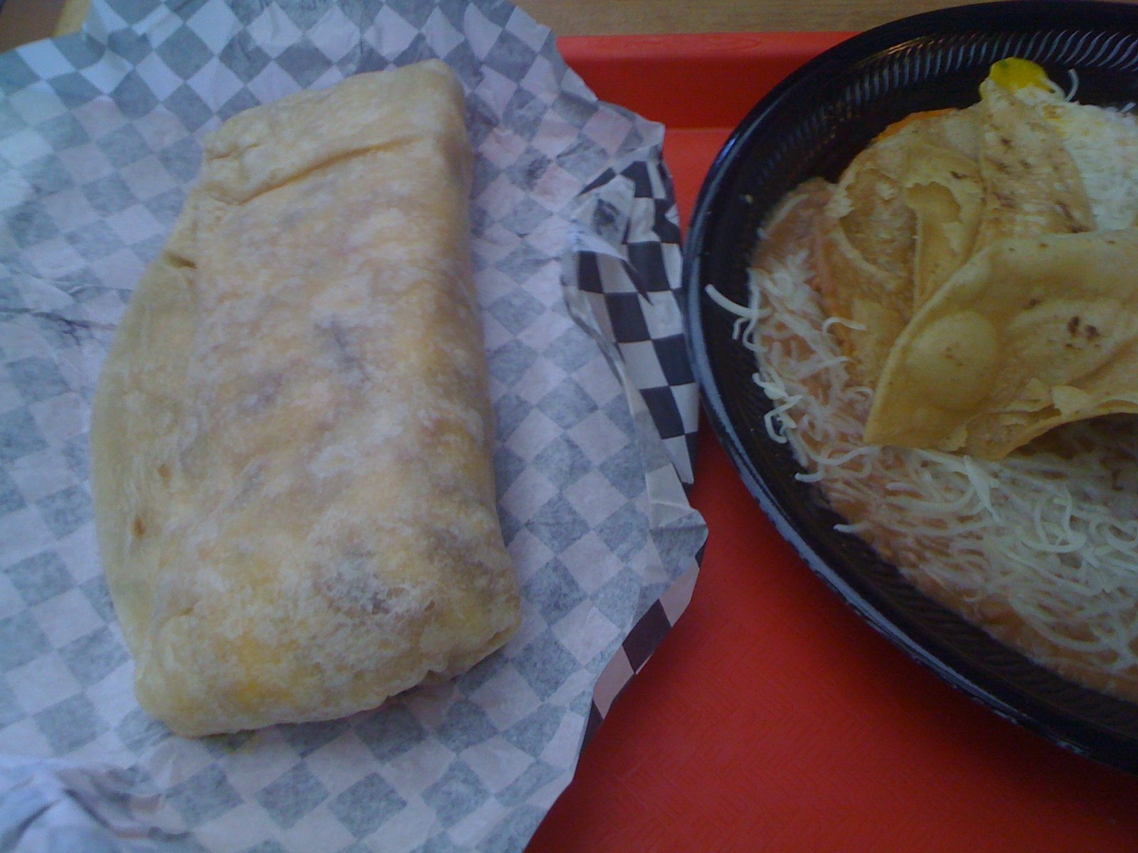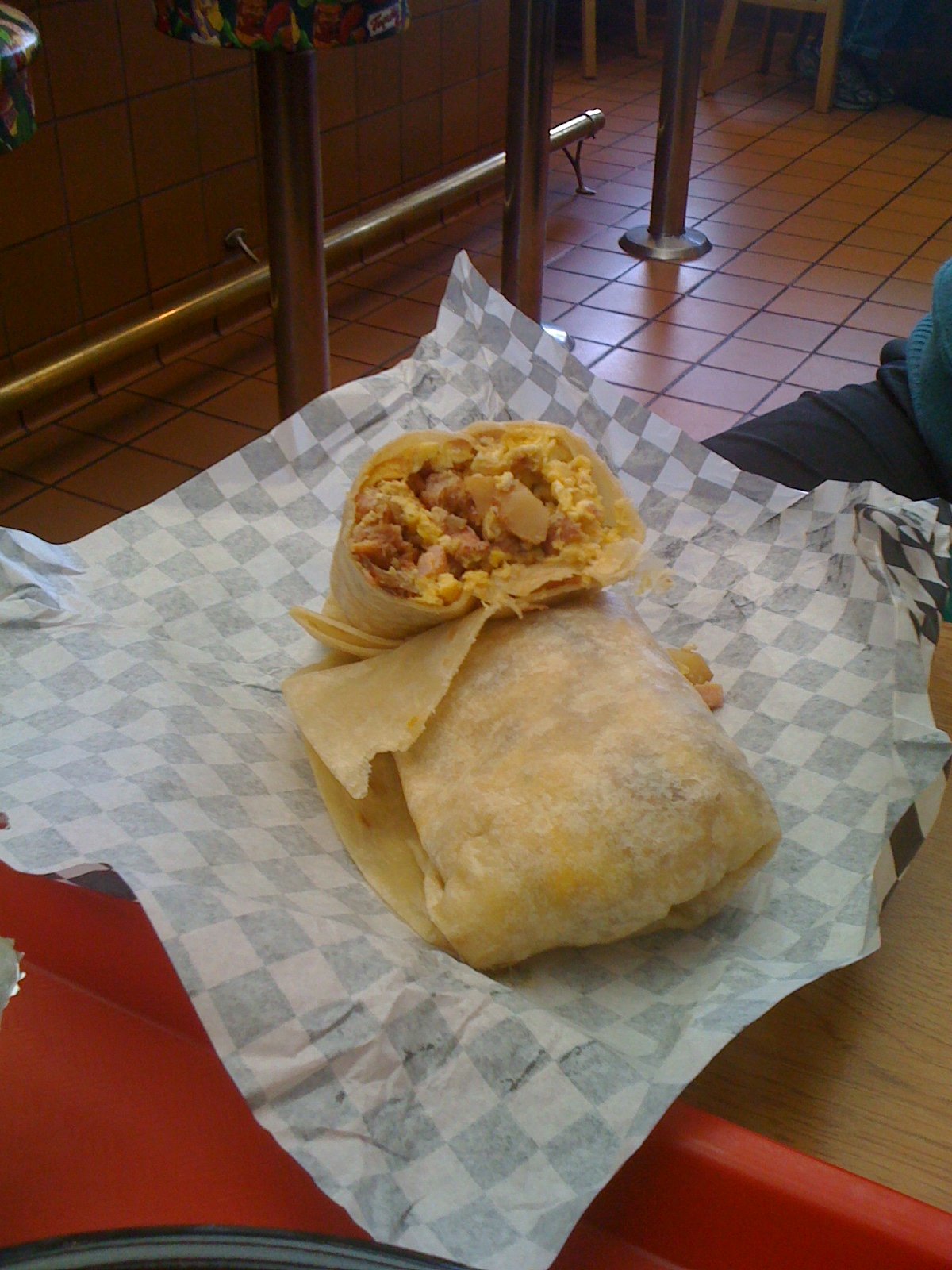 Which consisted of a ham, egg, potato and cheese breakfast burrito the size of my 8 inch plate.