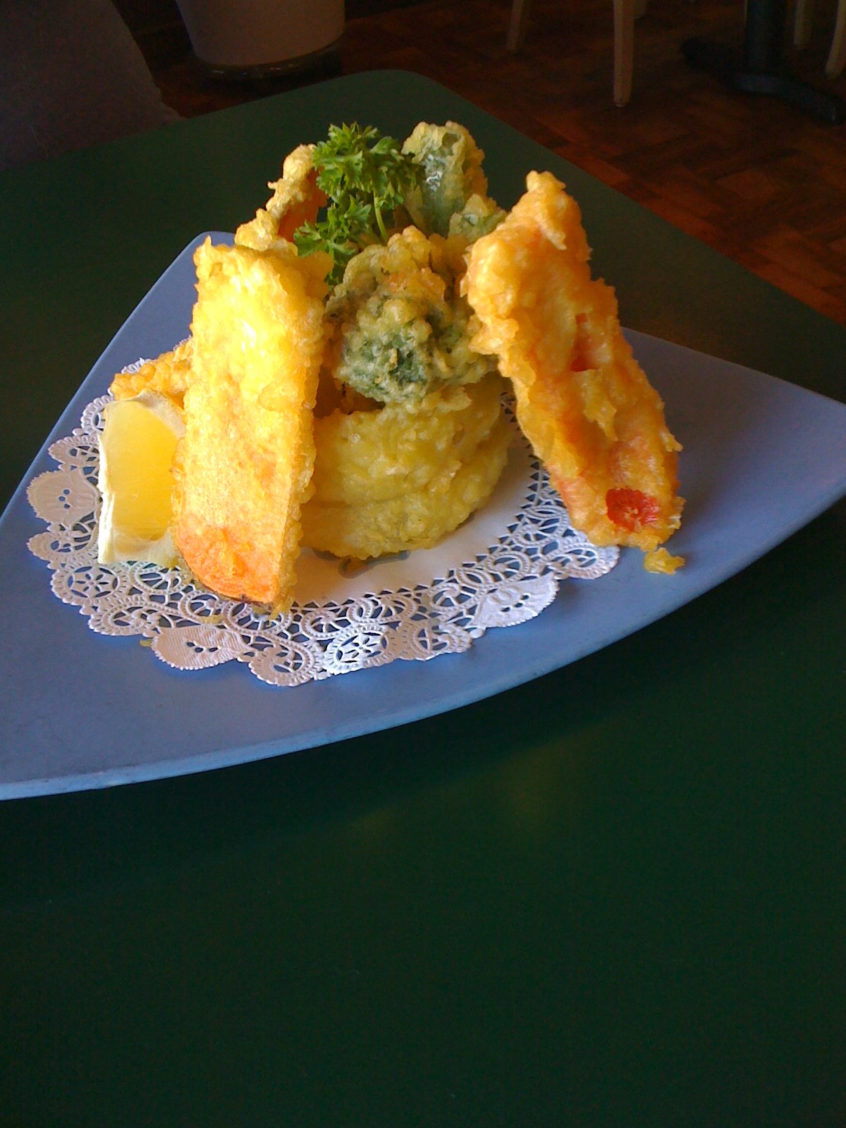 Vegetable Tempura ($7.99). Lightly breaded, crispy fried and drained vegetables- onions, squash, carrots, green and red pepper and broccoli.