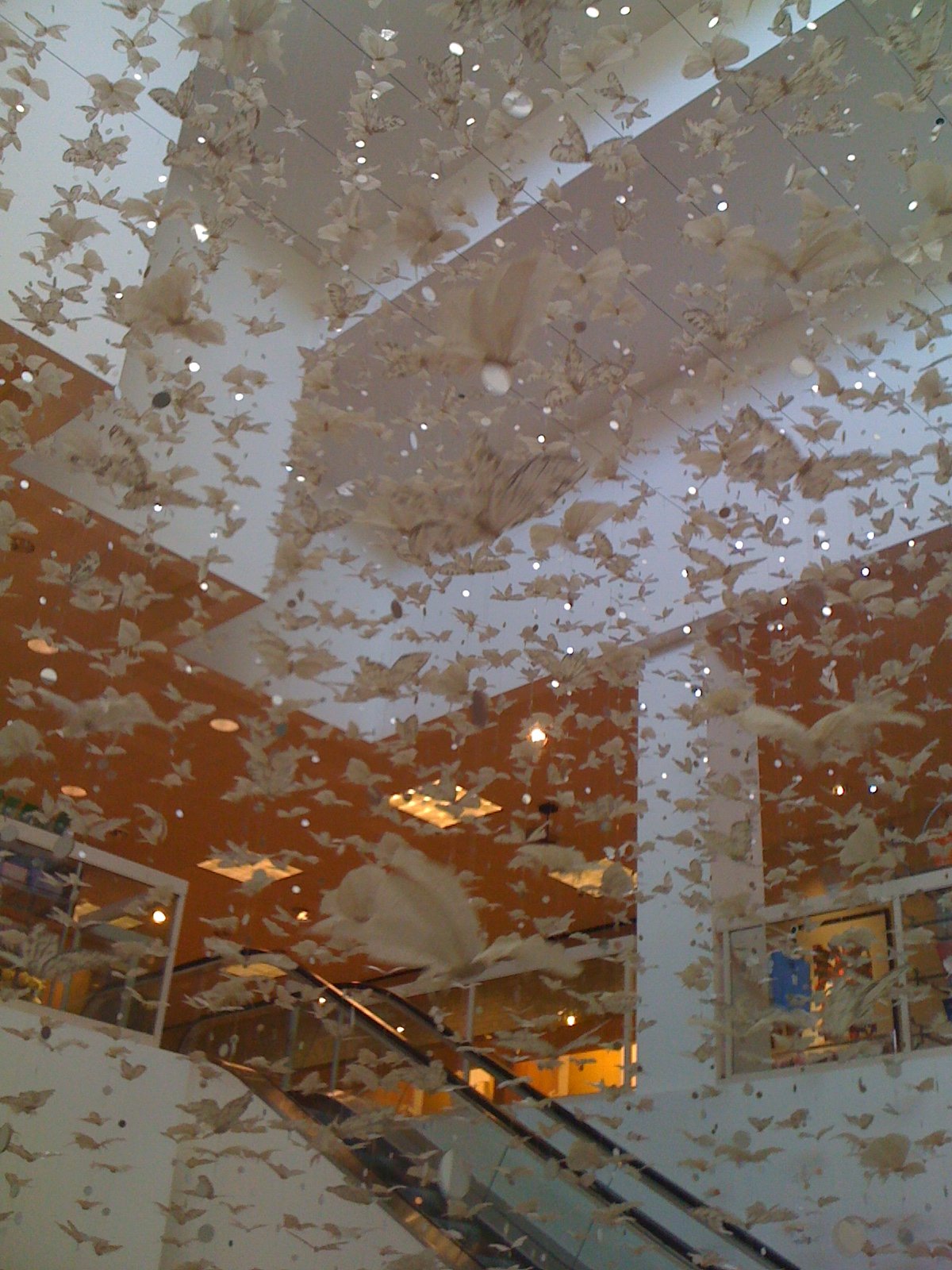 Walk in, take the escalator to the third floor. Admire the Art Installation of thousands of butterflies made of feathers, gold and silver paint and mirrors hanging from the roof to the main floor. There are other Neiman Marcus Collection paintings and sculptures sprinkled throughout the store. It's a kind of art gallery sprinkled among the various Departments. At the top of the escalator, walk straight ahead, a bit to your right. There is an open doorway, "Zodiac" is emblazoned above it. Step inside. You'll be greeted promptly. If you are carrying bags, you'll be asked if you'd like to check them. Then you'll be seated and handed your menu.