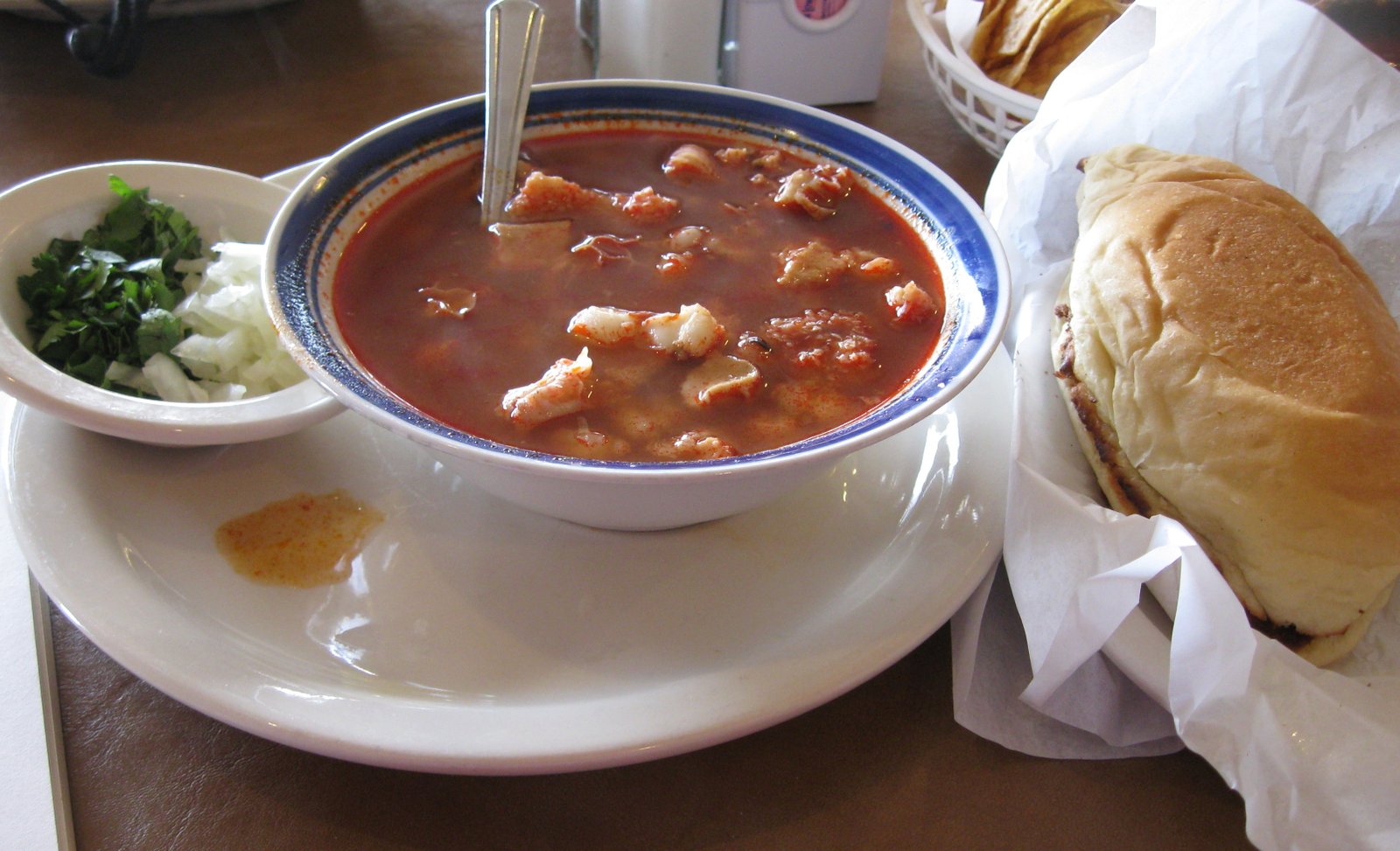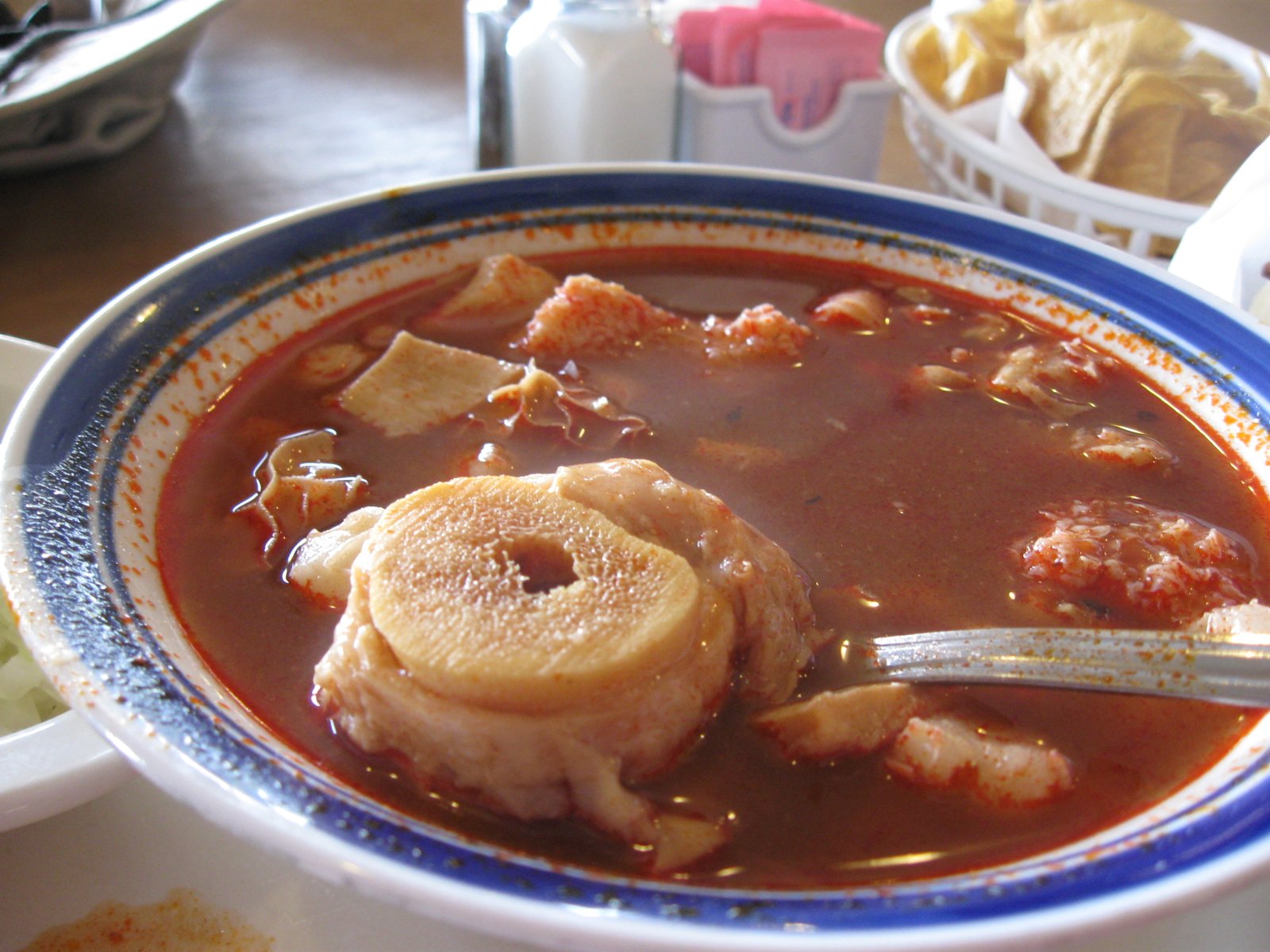 Since I hate to end a post on a down note, I want to finish by talking about and showing you pictures of what I think is the best menudo in town, served with chopped cilantro and onion and a nice bolillo roll:IMG_2610