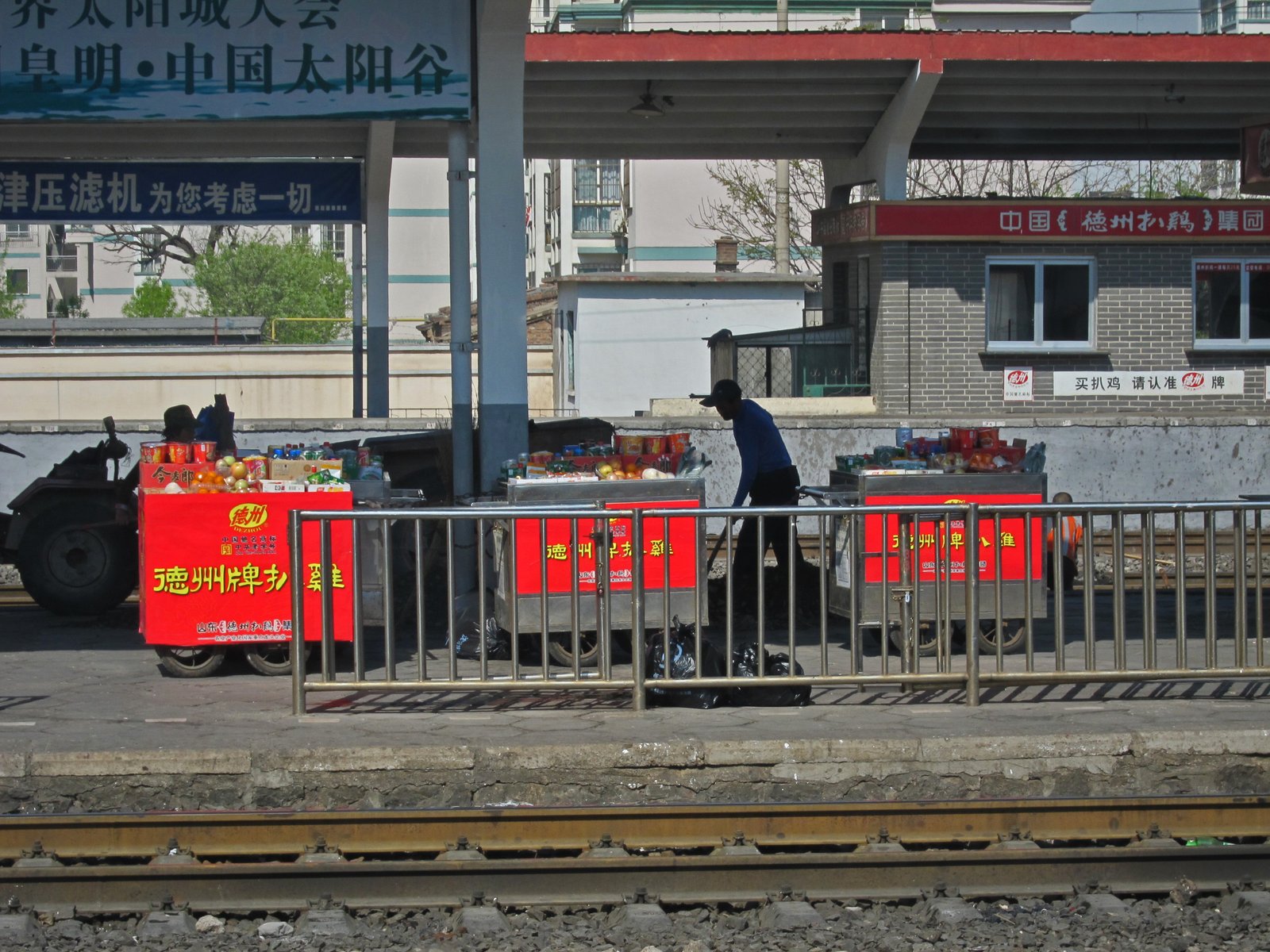 The six hour ride goes through most of the large cities enroute to QingDao, including Jinan and Dezhou, home to Dezhou Pa Ji (Dezhou Chicken), a famous braised chicken that the Missus loved so much, She wrote Her one and only post about it. Anyway, here are some carts in Dezhou station.
