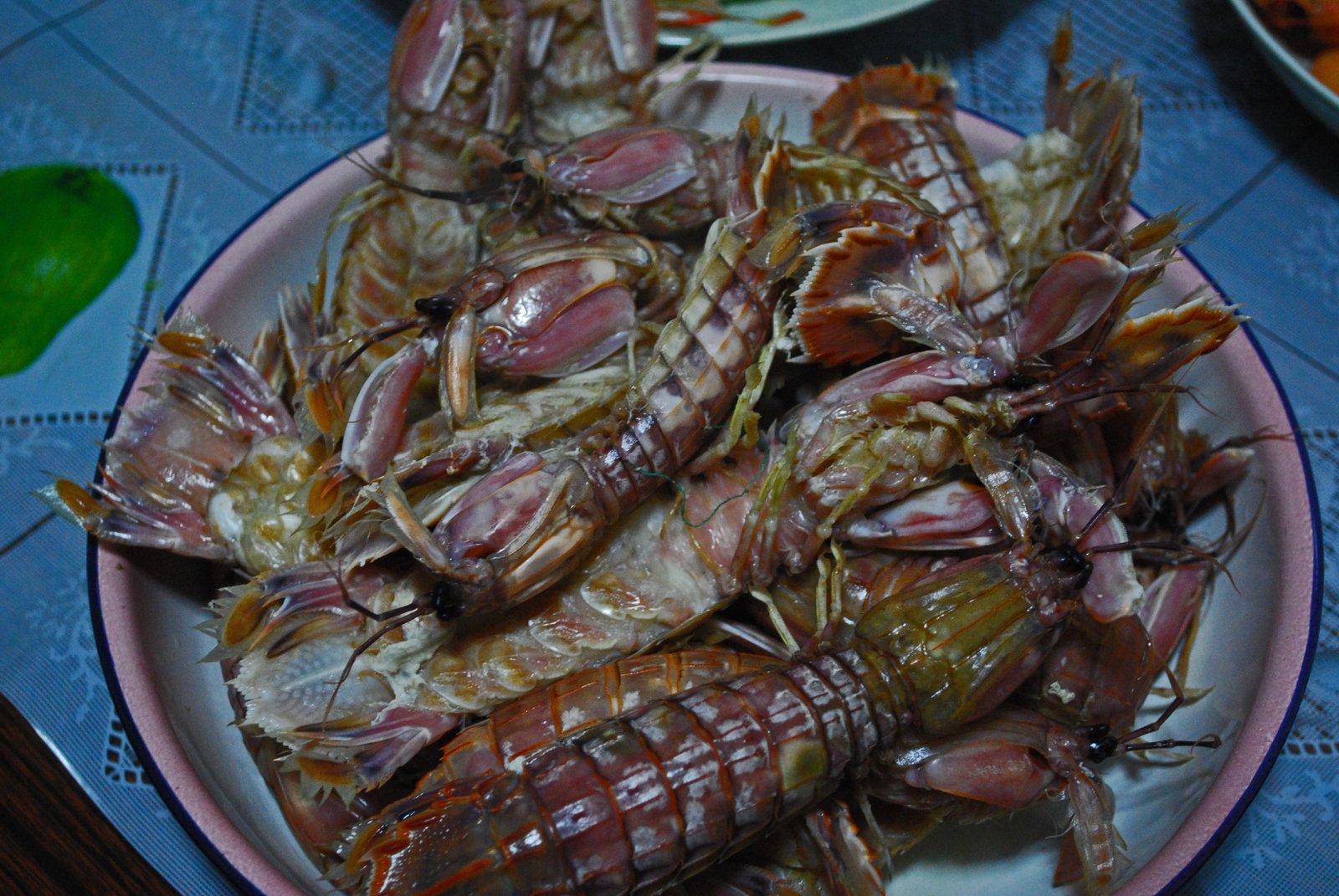 You remove one of the claws and use it to pick out the even sweeter meat in the tail portion….. Of course, since I needed much instruction, Fifth Uncle filled my plate with Mantis Shrimp he had already peeled….. Man did I love this family!