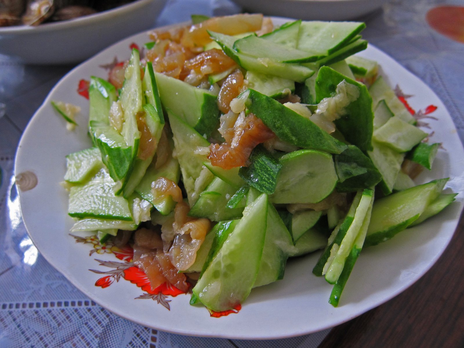 Cucumbers stir fried with shrimp that I believe the Missus's Fifth Aunt dries herself.