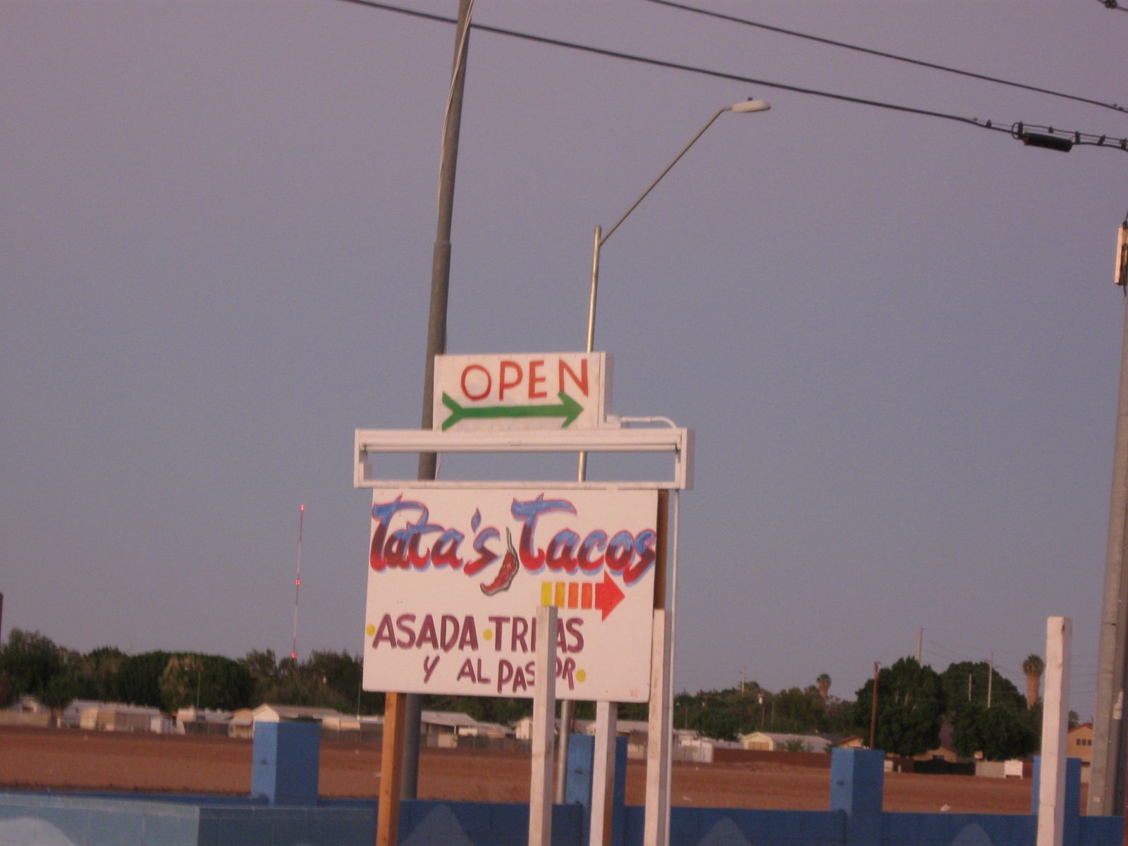 Like most readers at this site, ed (from Yuma) is awaiting more of Kirk's mindboggling posts on China, and Kirk and Cathy's regular looks at San Diego dining. While waiting, he thought he'd let you folks know about a new and interesting taco stand in Yuma.
